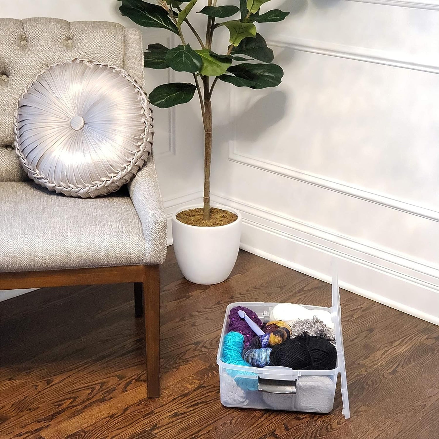 • Set of (4) clear storage containers with a 15.5-quart capacity each, allowing you to organize items efficiently