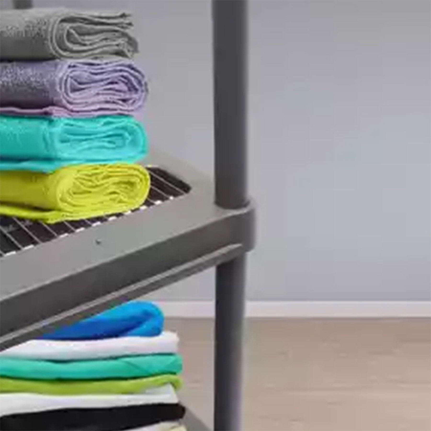 • Sturdy feet elevate the shelving unit to help avoid water damage