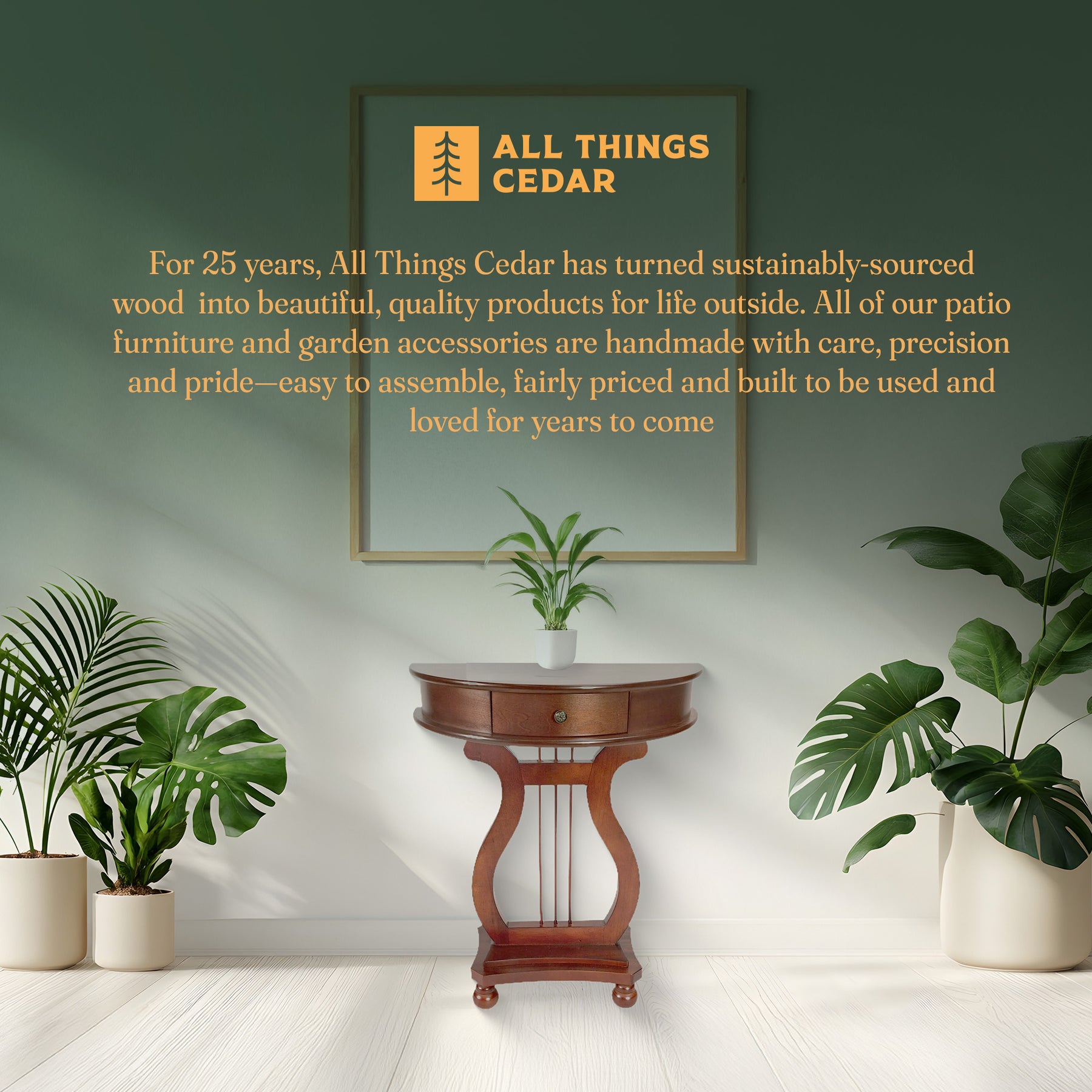 • Handmade with Care: For over 25 years, All Things Cedar has turned sustainably-sourced wood from the Pacific Northwest into high-quality patio and garden furniture. All of our products are hand made with care, precision and pride—built to be used and loved for years to come.