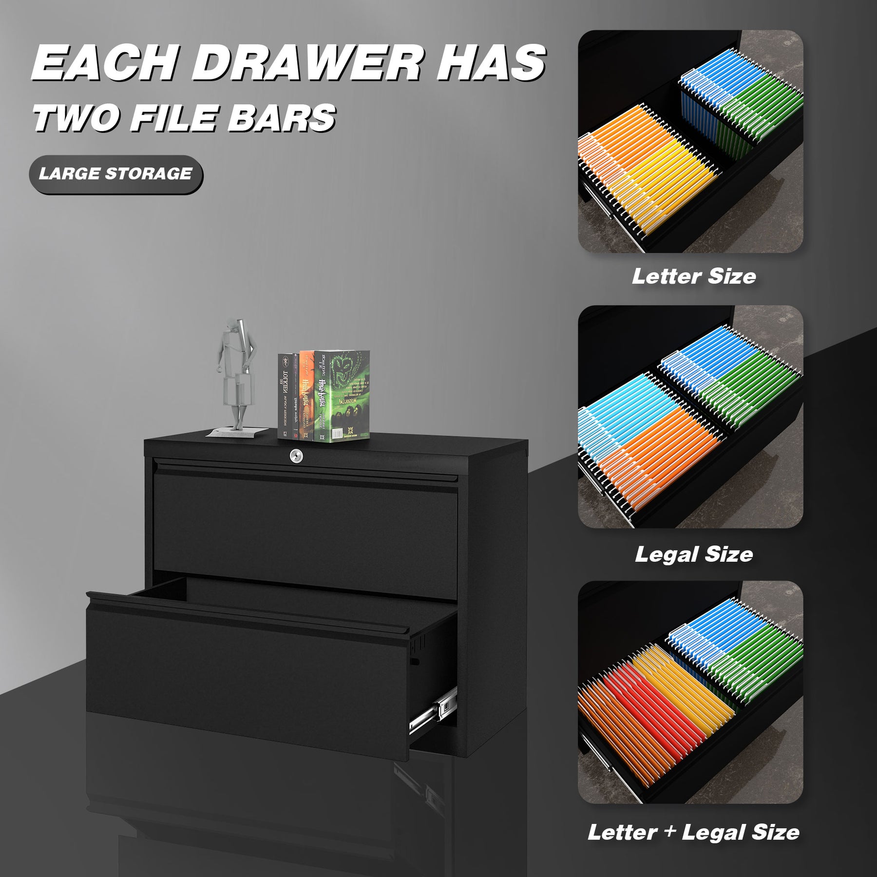 • Durable steel construction of the file cabinet makes it a great, stylish addition to garages, offices, or any other room