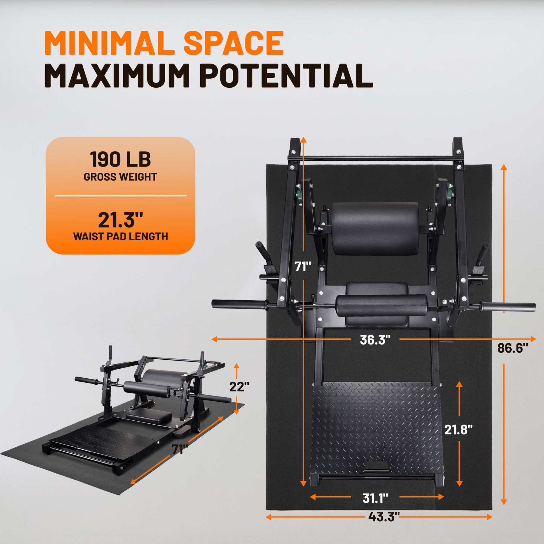 • 21.3-inch waist pad ensures comfort and reduces ankle or joint stress during hip thrusts and glute drives