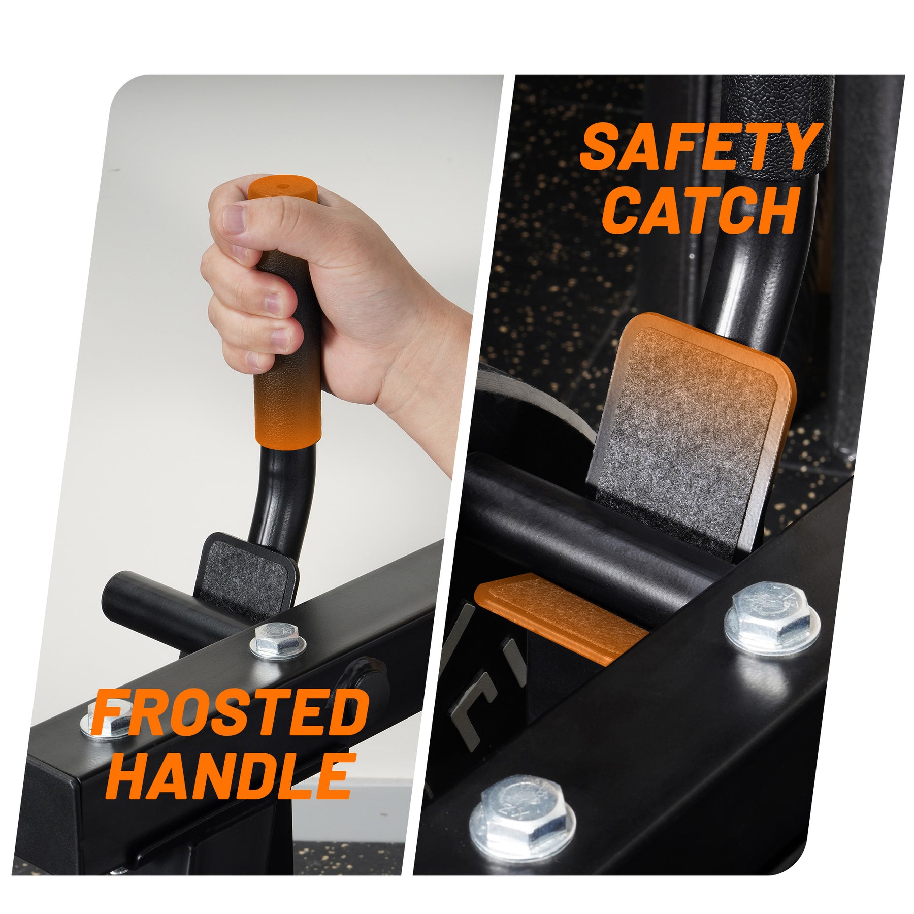 • Frosted handles, safety catch, and space-saving build make it perfect for compact home or garage gyms