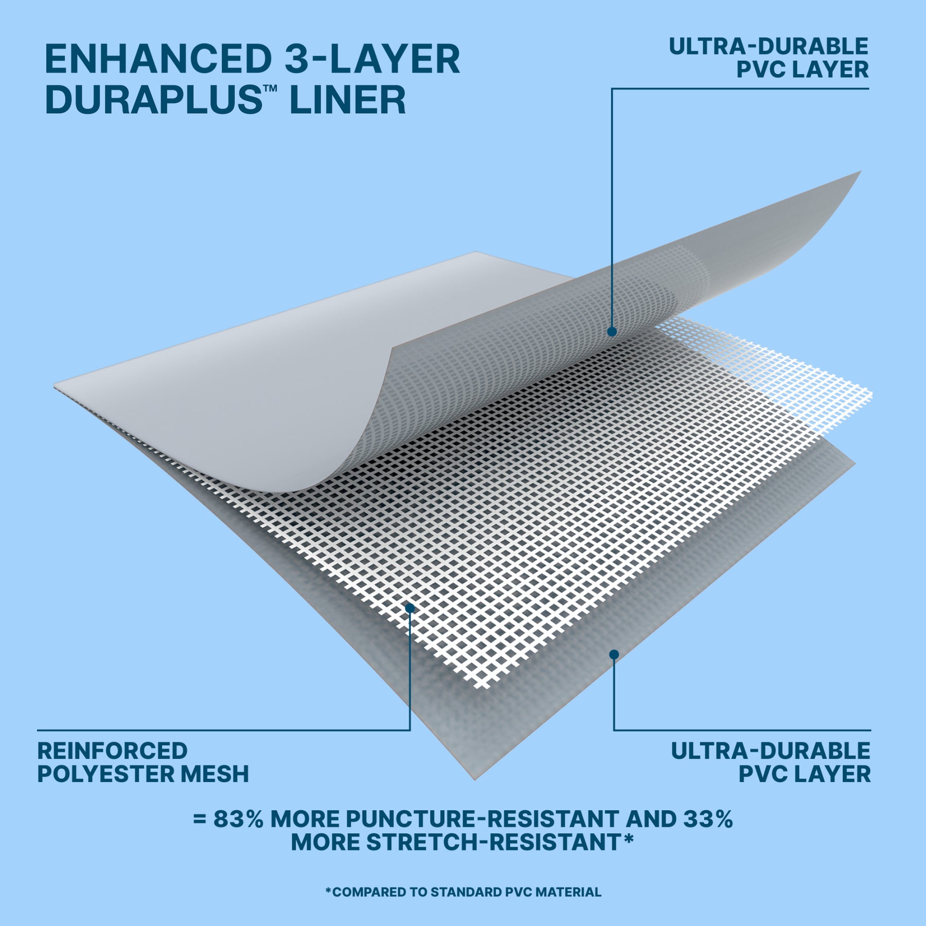 • TriTech enhanced 3-ply PVC liner provides a support band for additional stability to the pool wall for increased durability