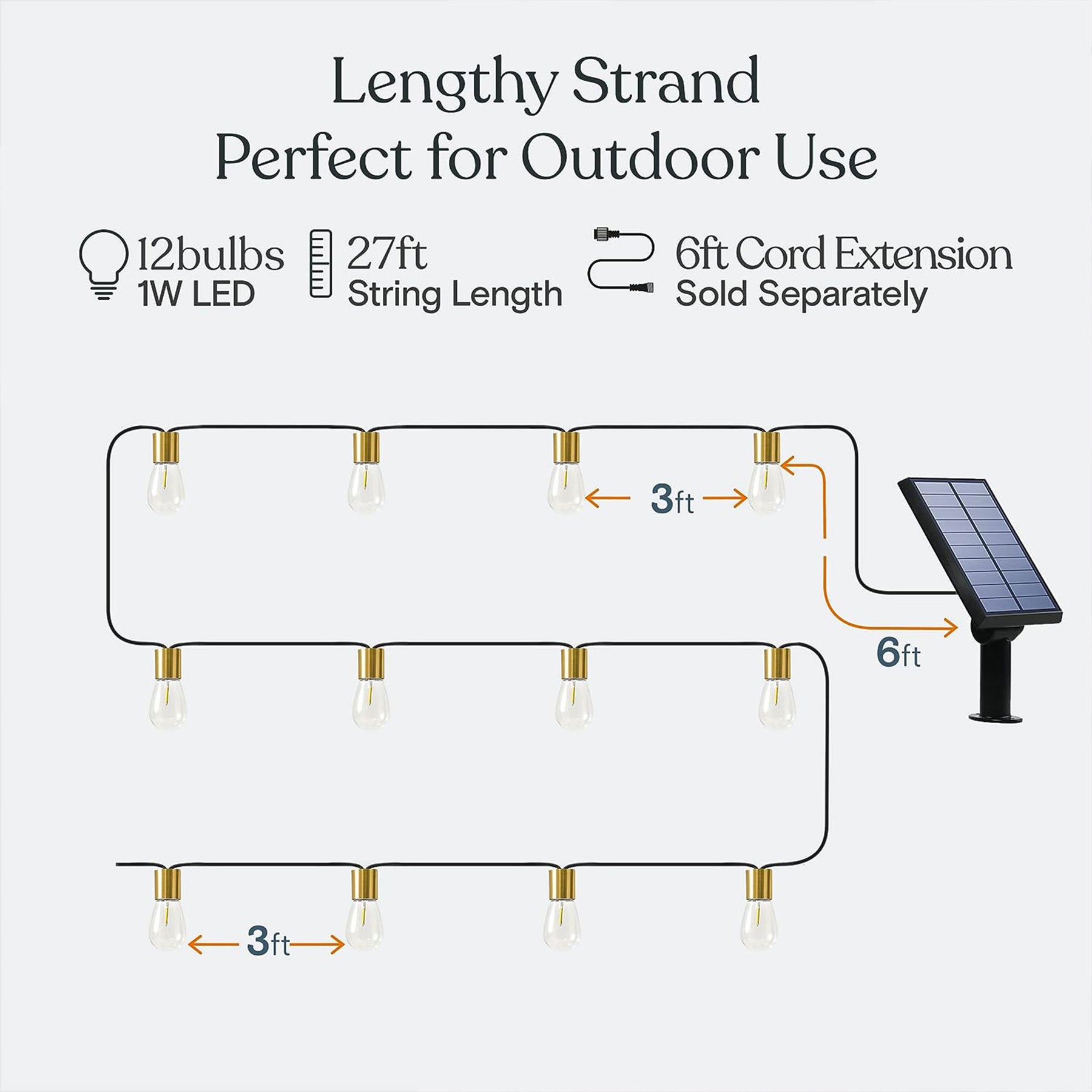 Brightech Solar Powered LED 12 Bulb Waterproof String Lights, 28 Ft (Open Box)