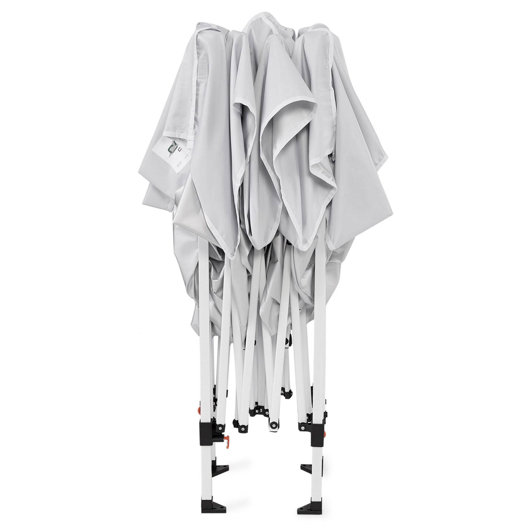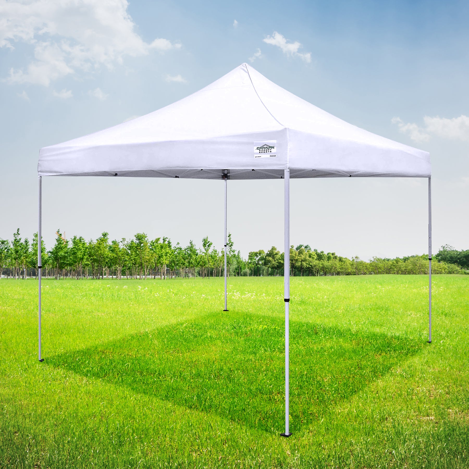 • Fully assembled straight leg pop up canopy with rising truss style, white powder coated steel frame for maximum head room