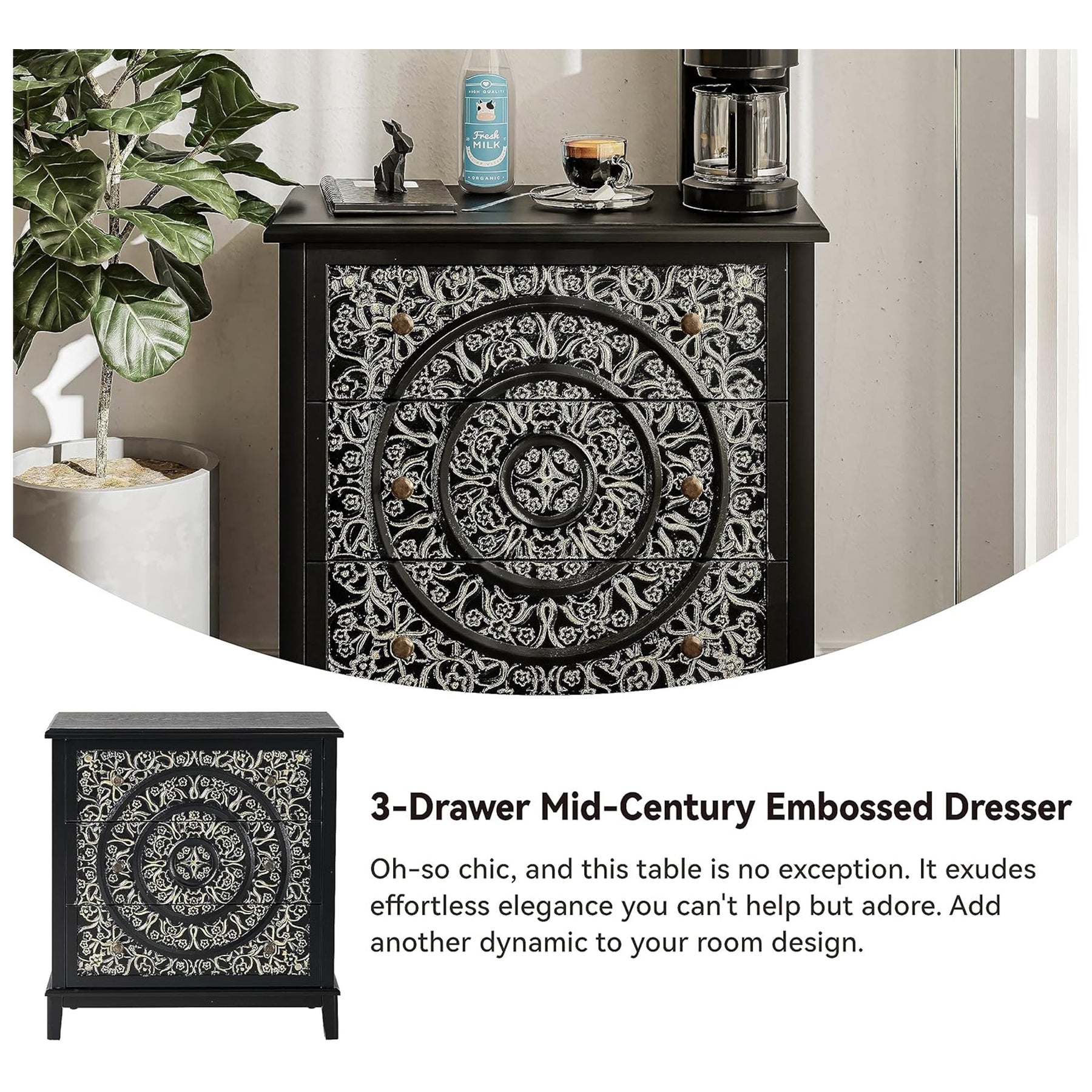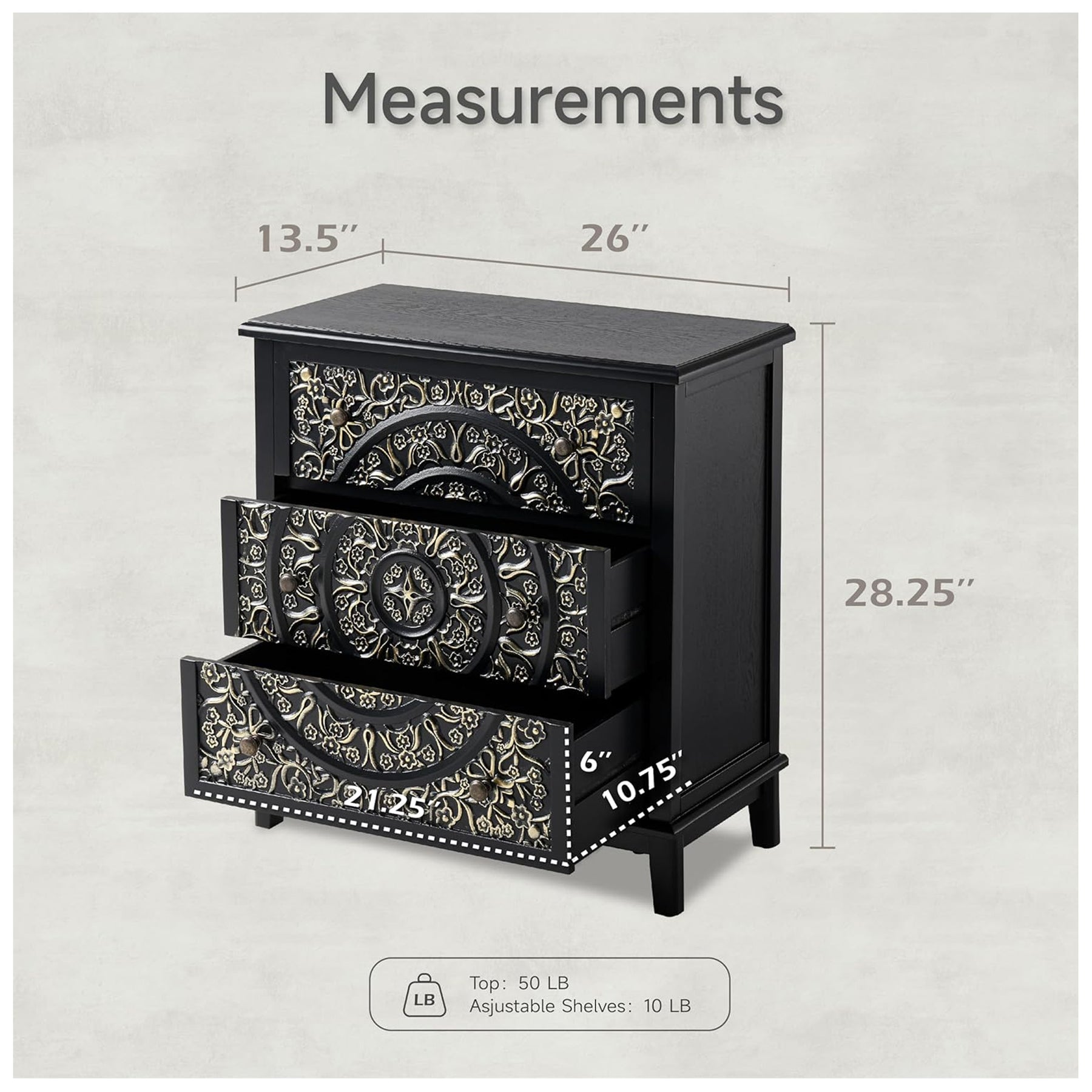 COZAYH 3-Drawer Flower Motif Dresser Fully Assembled Furniture, Gold & Black