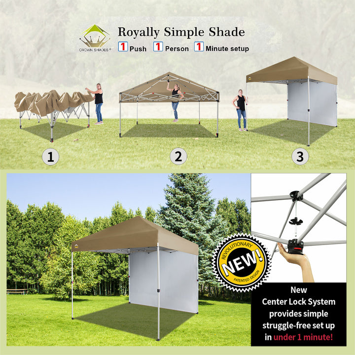 CROWN SHADES 8x8 Ft Pop Up Canopy Tent w/ Sidewall & 1 Push Lock, Beige (Used)
