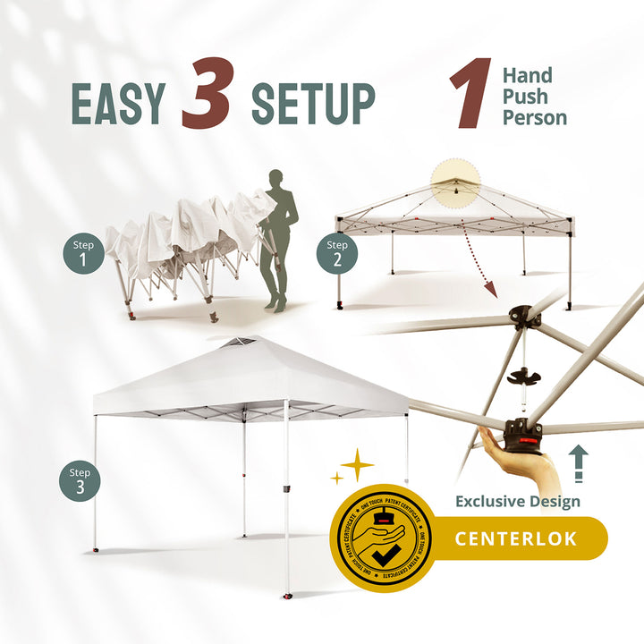 - Patented 1-push center lock technology, allowing 2 people to set up the canopy in seconds without any tools