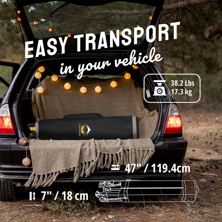 - Comes with a storage bag that fits in most vehicles, measuring 44 x 8.5 x 8.5 inches