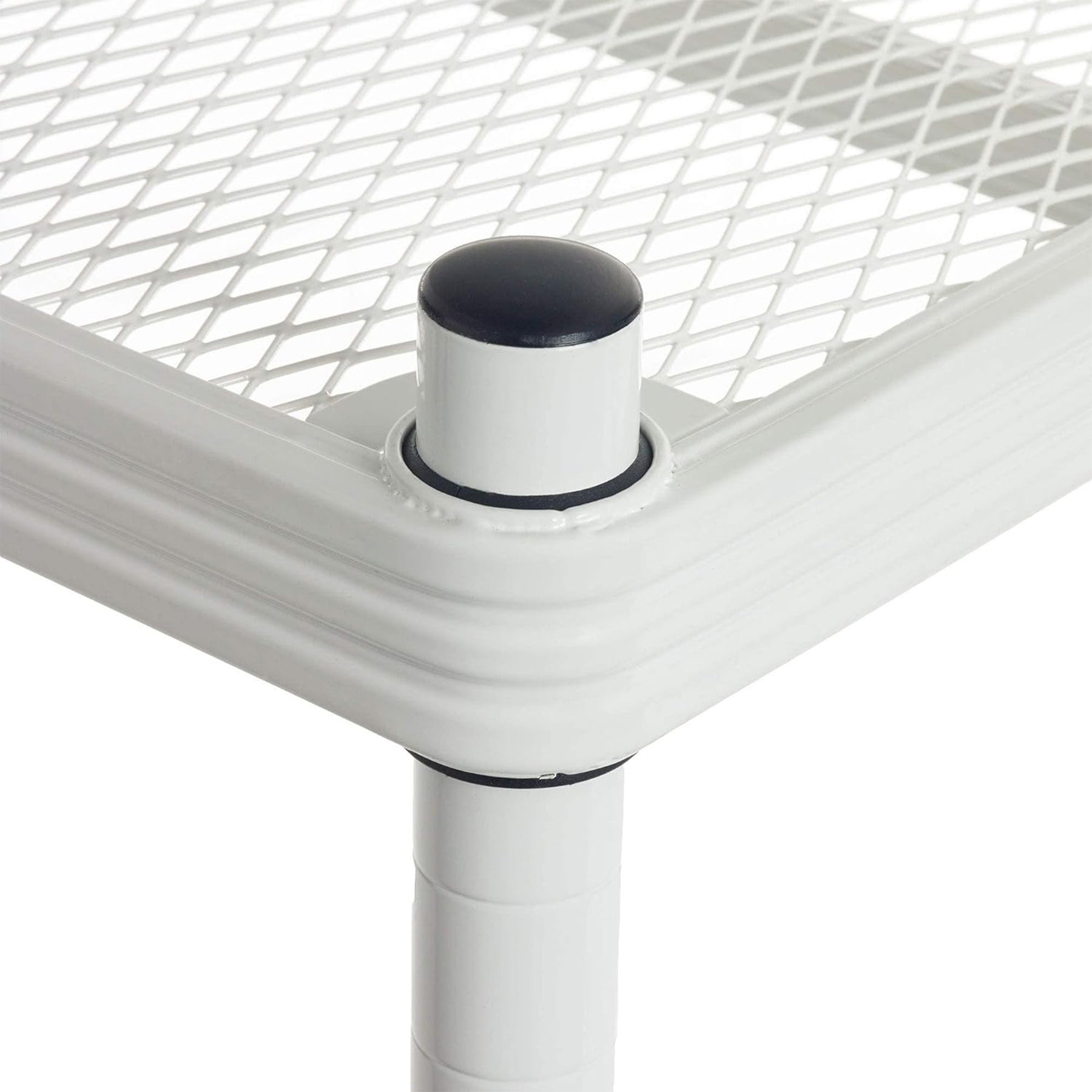 • Heavy-duty stainless steel metal mesh design; Each shelf from this standing shelf unit supports up to 440 pounds