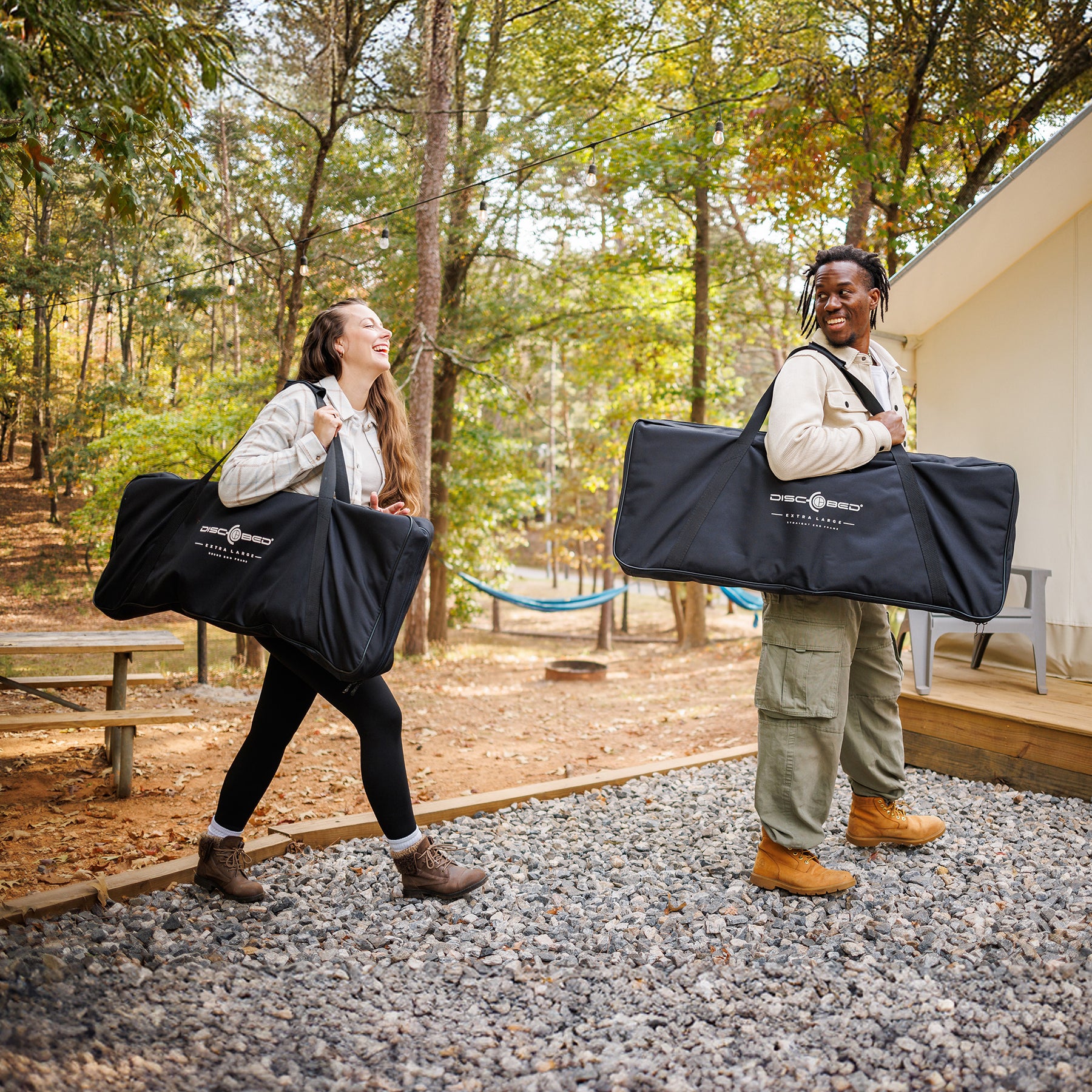 Disc-O-Bed Outdoor Convertible 2 Person Portable Camping Cots, Black (Open Box)