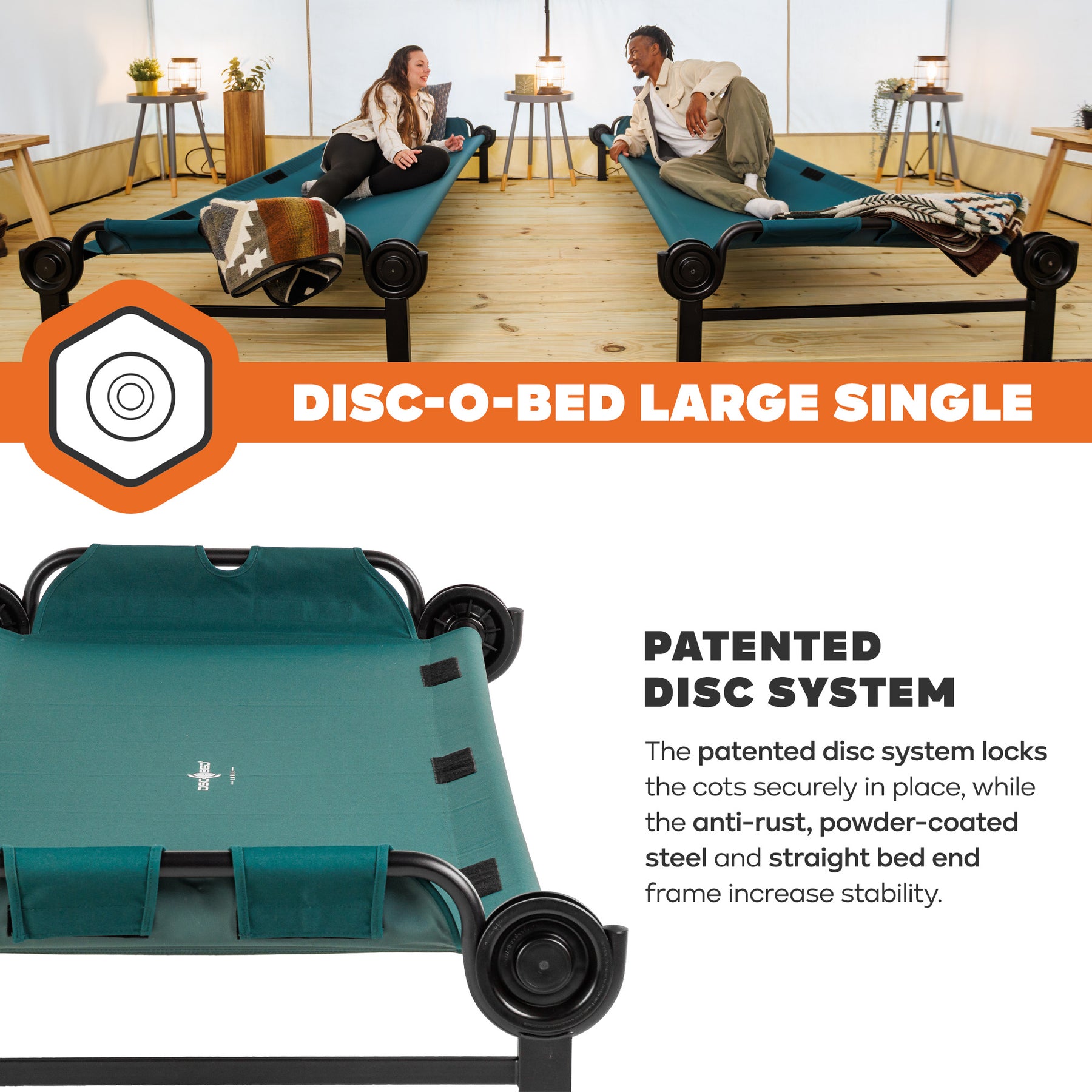 Disc-O-Bed Single Cot, Portable Sleep Solution for Tents & Cabins, Green (Used)