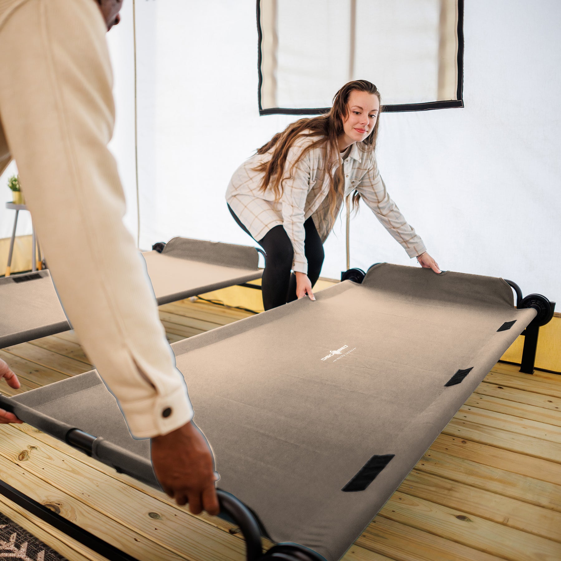 Disc-O-Bed XL Outdoor Convertible 2 Person Portable Camping Cots, Tan(Open Box)