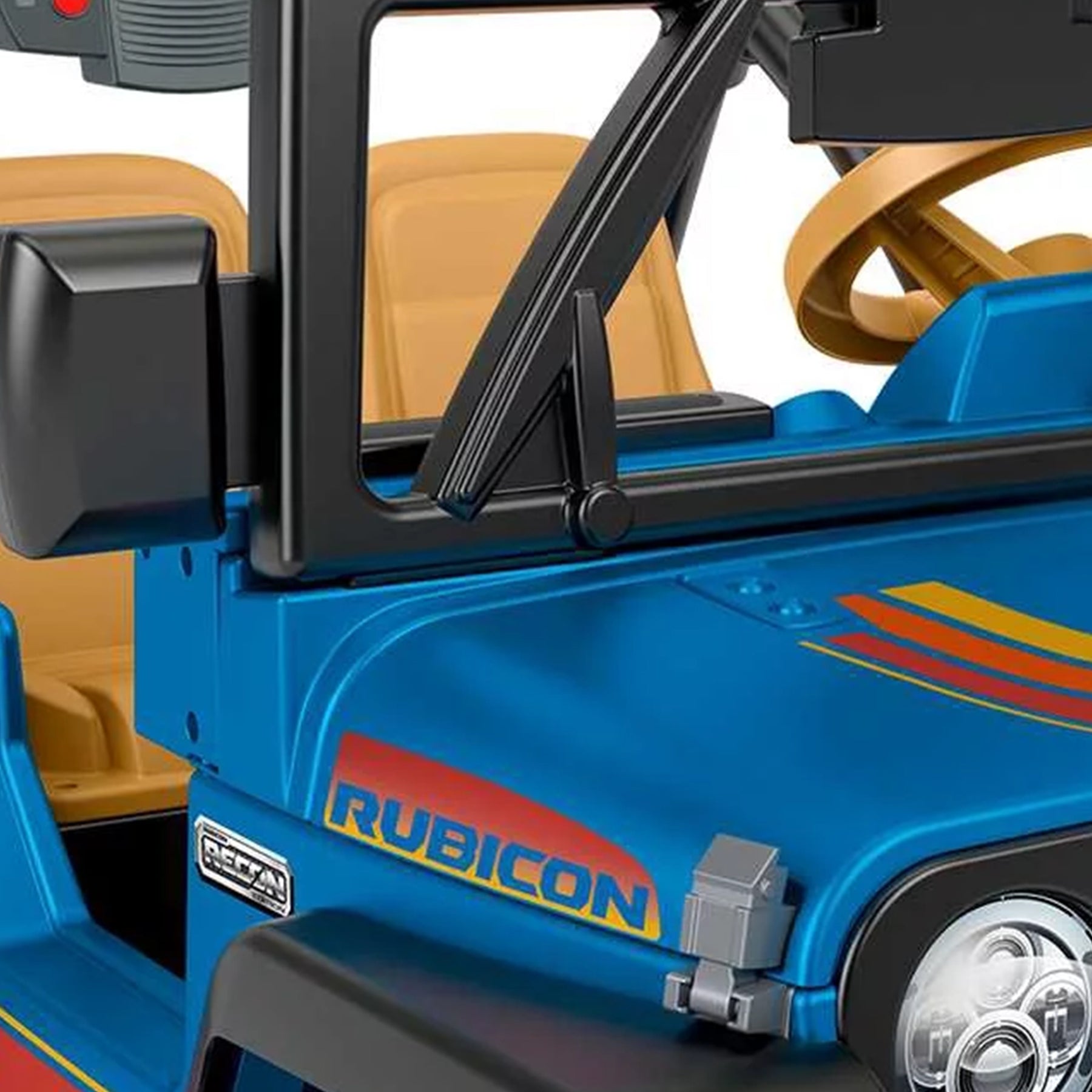 • Realistic 2-seat ride-on vehicle toy styled after the Retro Jeep Wrangler for authentic off-road playtime riding experiences