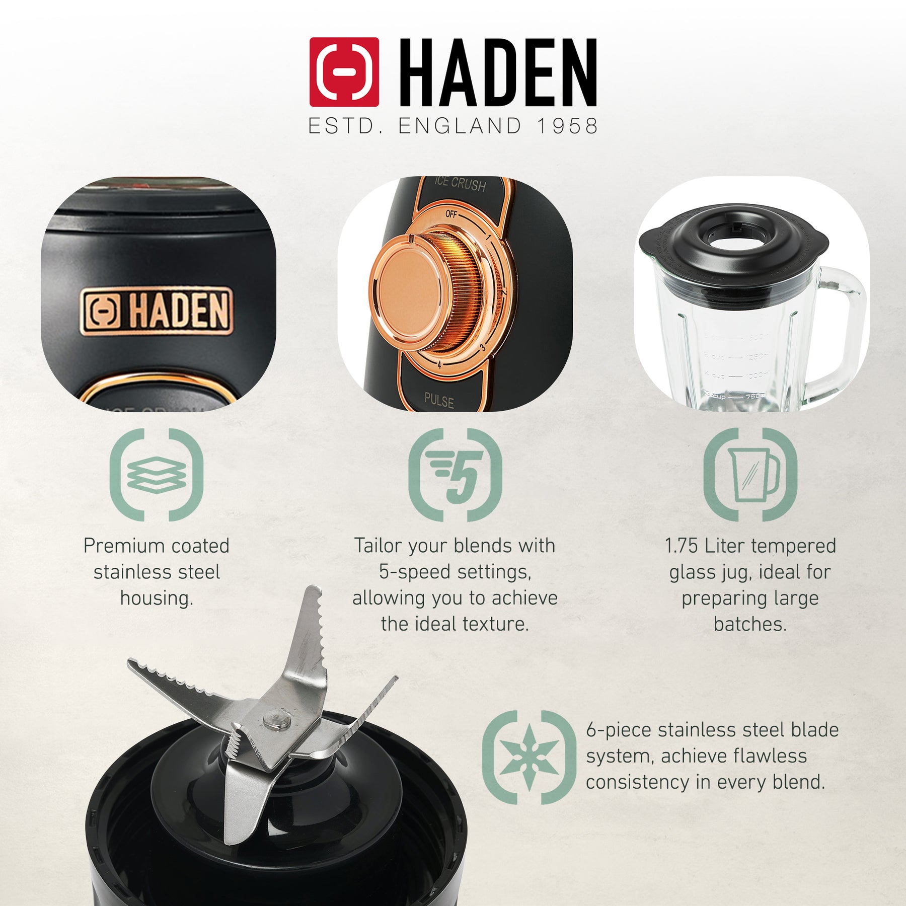 Haden Stainless 1.75 Lt Glass Jug 700W Motor Power Blender, Black/Copper (Used)