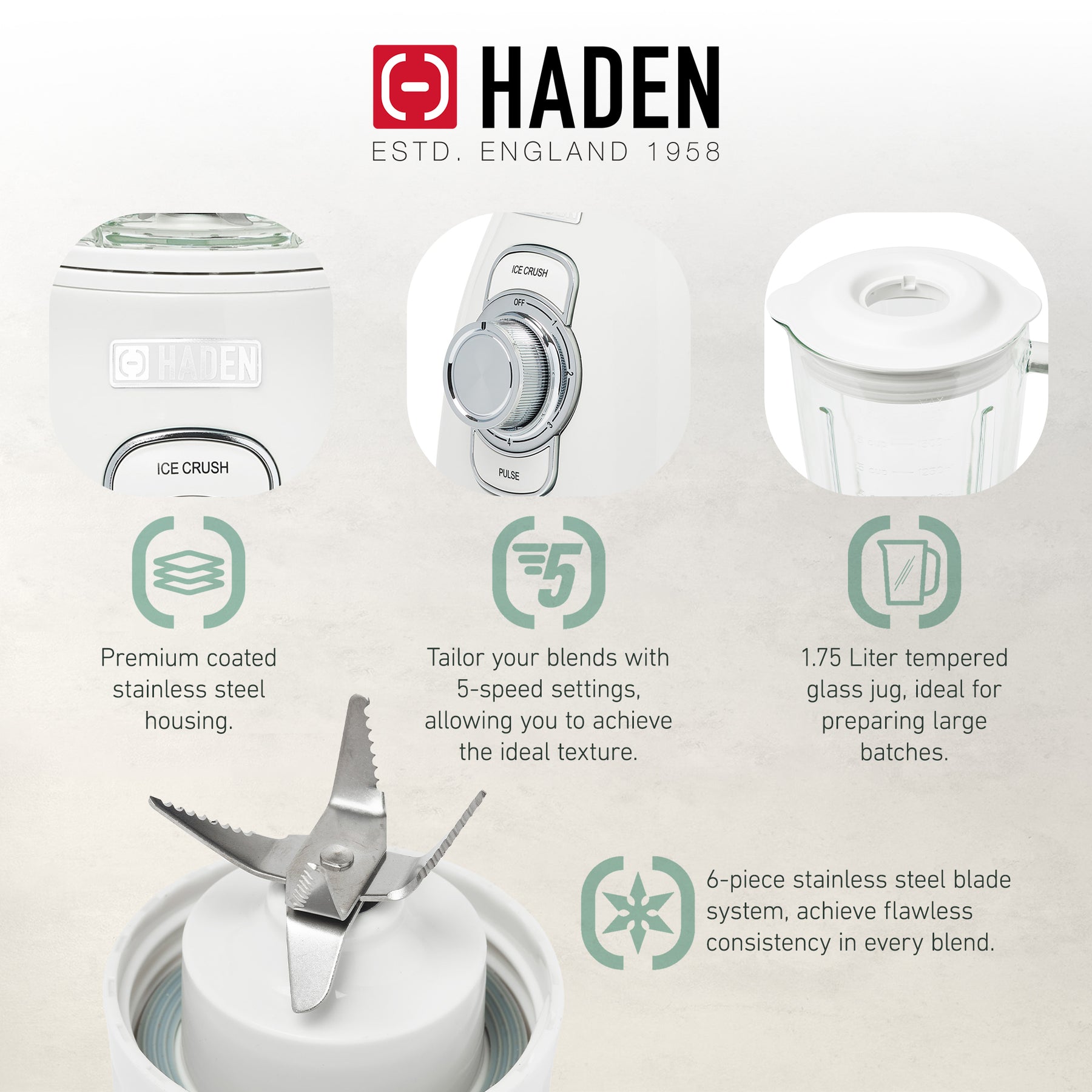 Haden Stainless 1.75L Glass 700W Motor Power Blender, Ivory/Chrome (Open Box)