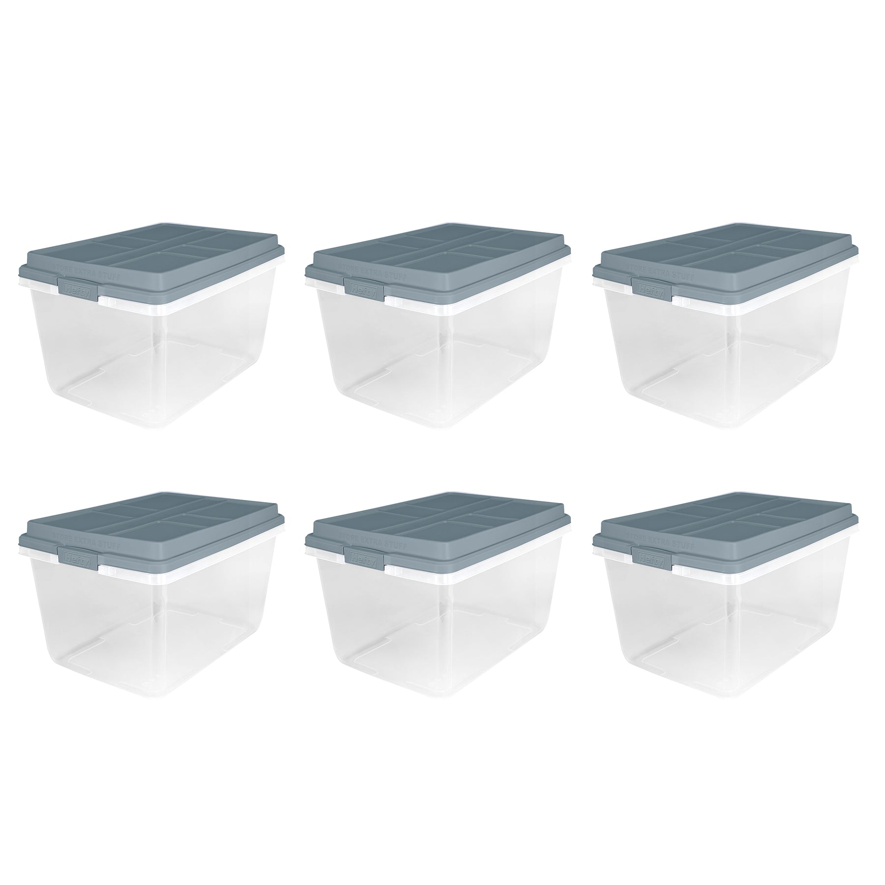 Hefty 72 Qt Hi-Rise Plastic Storage Bin with Lid, 6 Pack, Smoke Blue (Open Box)