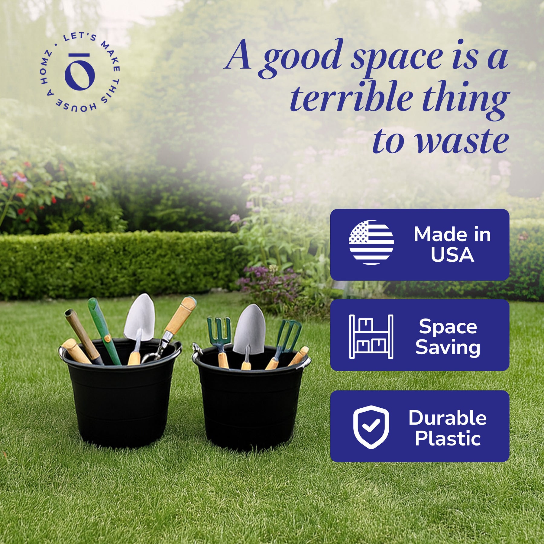 Homz Plastic 17 Gal Storage Bucket Tub w/ Rope Handle, Black, 2 Pack (Open Box)