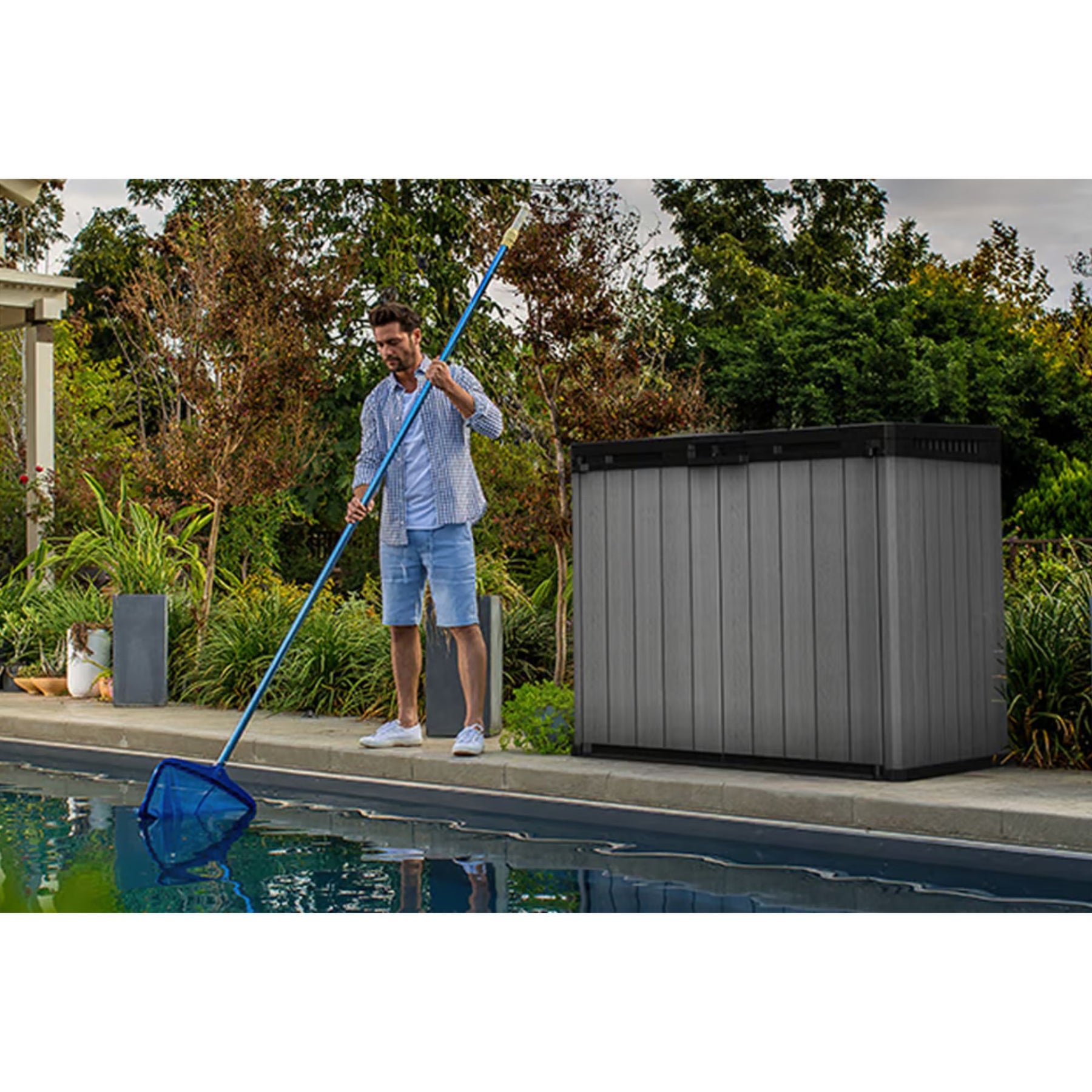 • Modern vertical grain and grey tone suit any patio or yard setup
