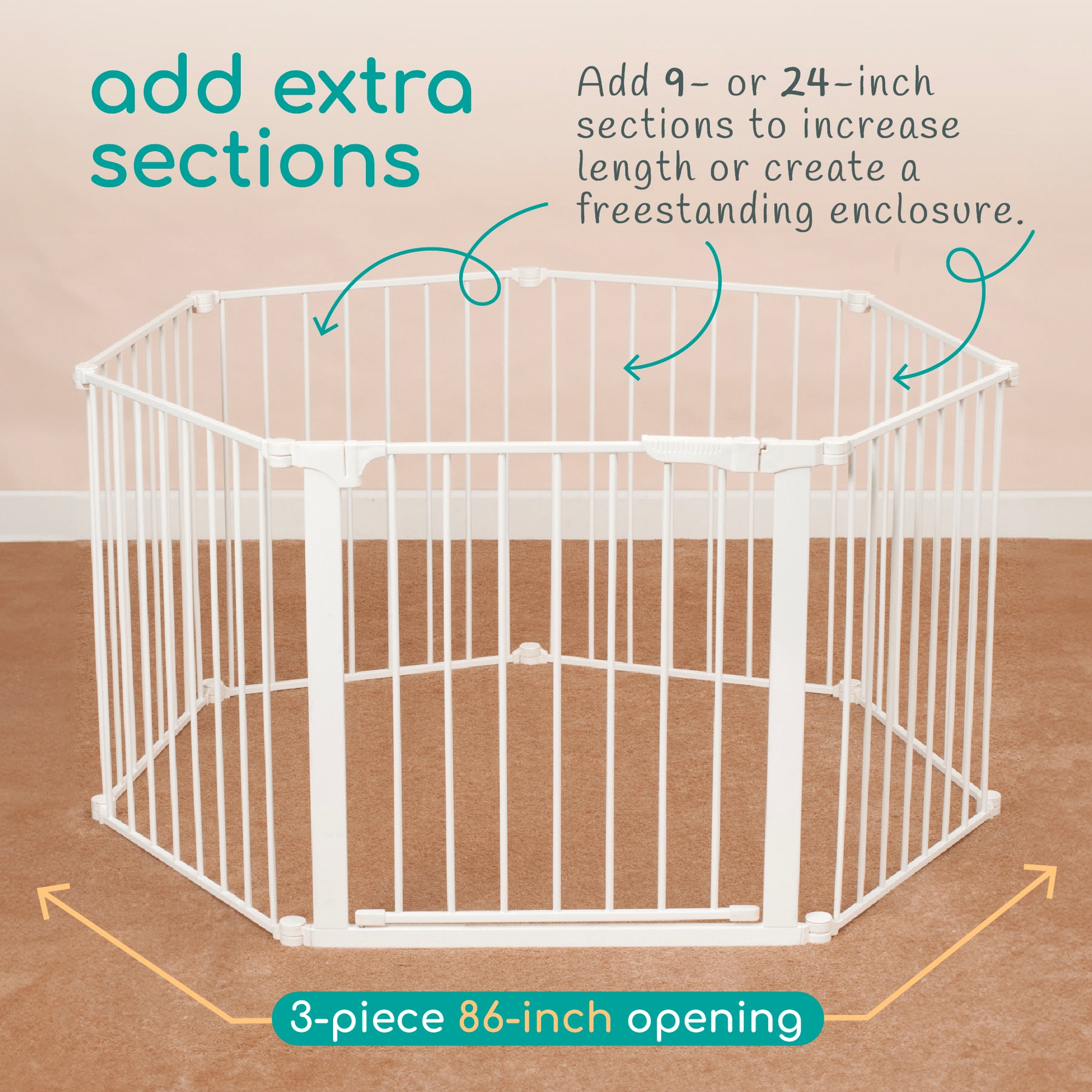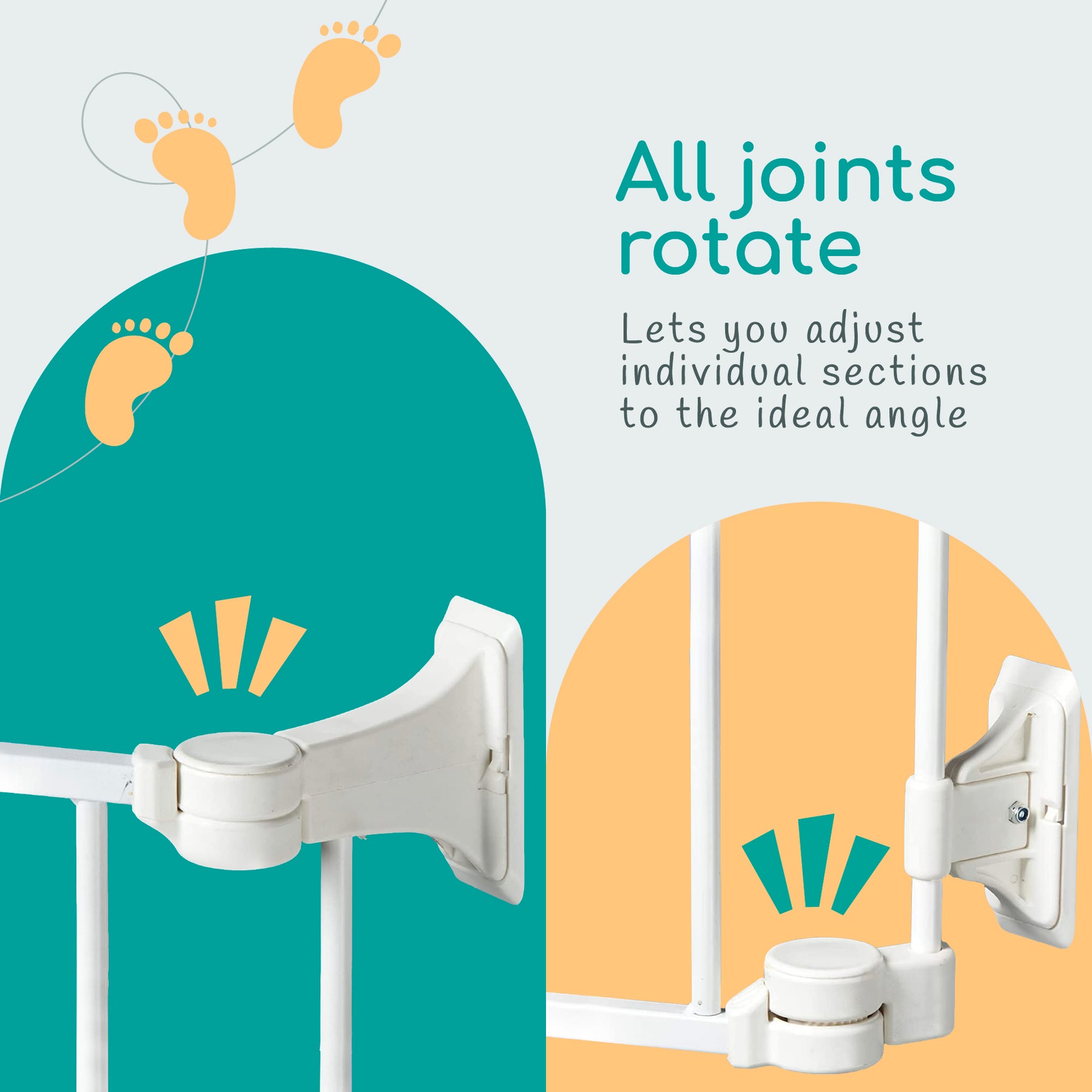 • Heavy-duty baby, toddler, or child safety gate provides protection in wide or odd-shaped rooms or areas when mounting points don't line up directly