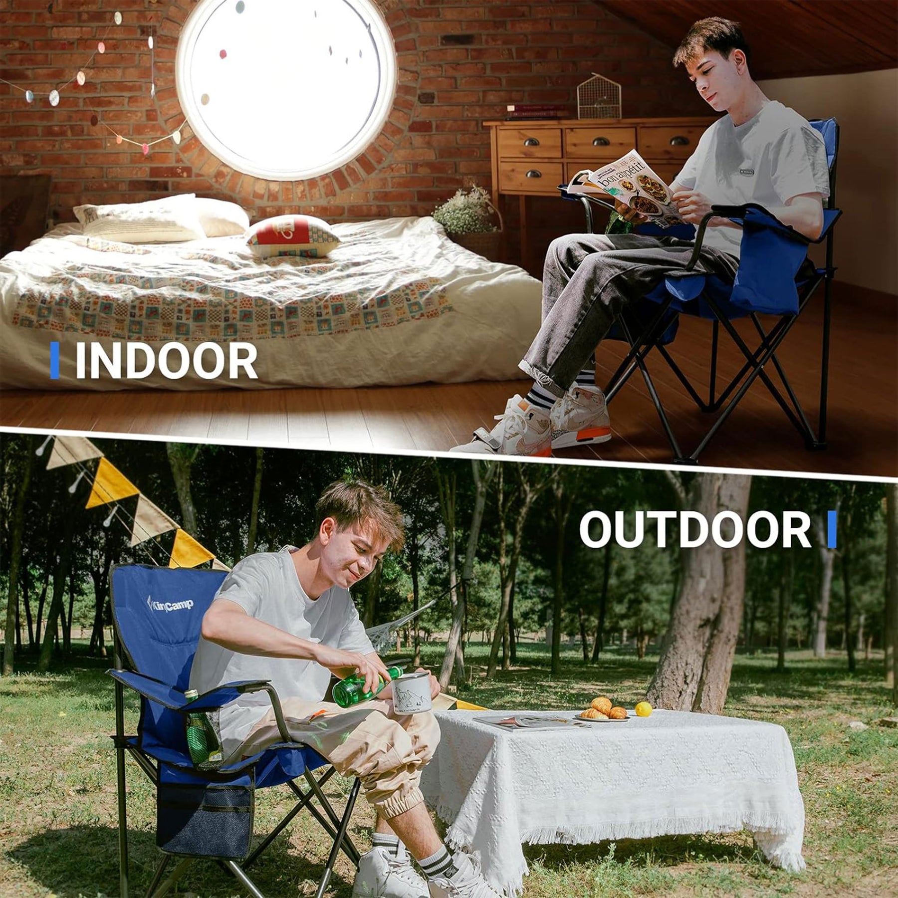 KingCamp Padded Folding Chair with Cupholder, Cooler, and Pocket, Blue(Open Box)