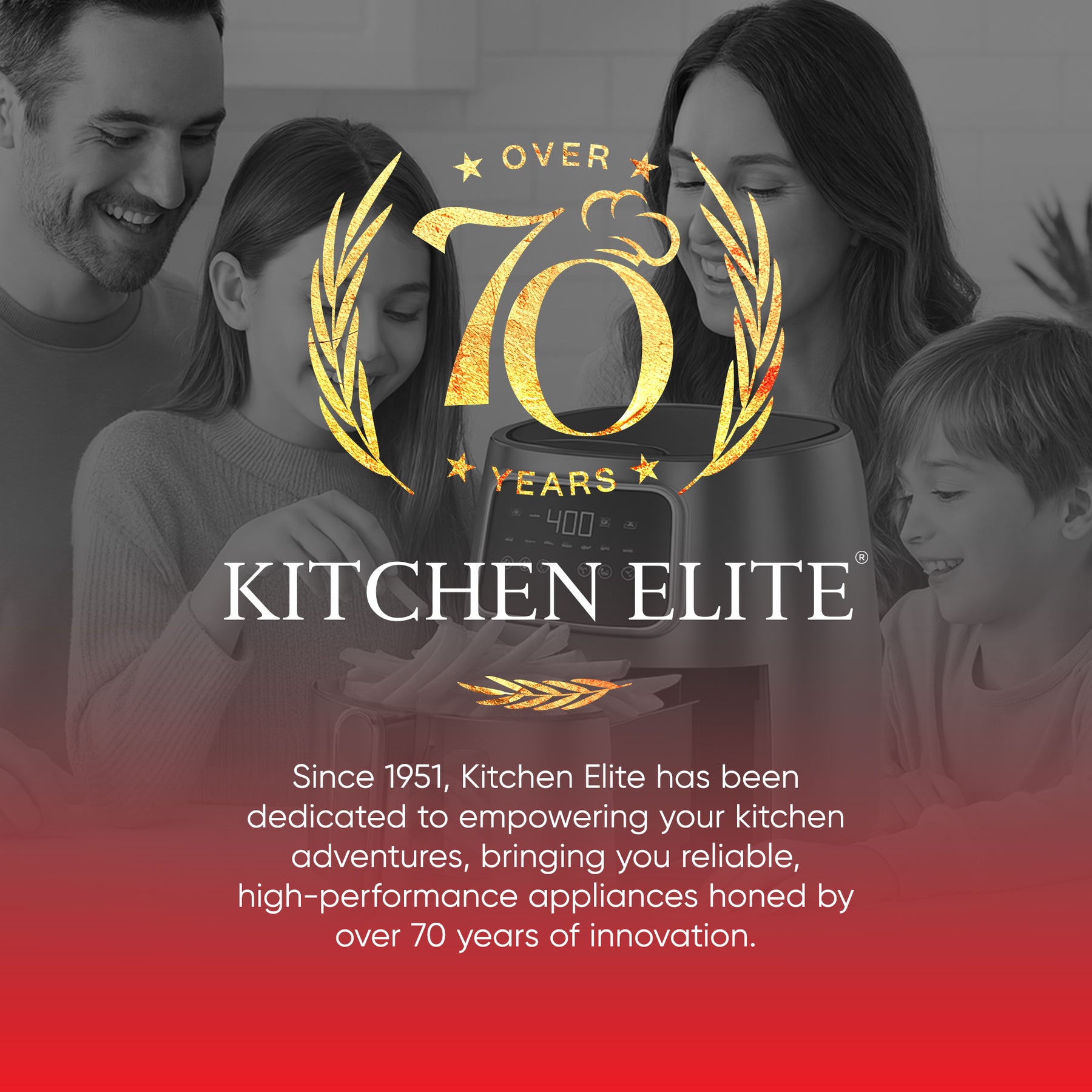 Bring a powerful performance to your kitchen with the Kitchen Elite 5.5 Qt. Digital Air Fryer. Designed for couples and small families, this stylish appliance makes it easy to enjoy crispy, delicious meals with less oil and guilt-free indulgence. Featuring 1500 watts of rapid air technology, it circulates hot air evenly to cook your favorite foods to golden perfection; whether you’re air frying fries, roasting vegetables, reheating leftovers, or even dehydrating snacks. The 5.5-quart capacity is ideal for preparing meals for 2–4 people, offering ample space without taking over your countertop.