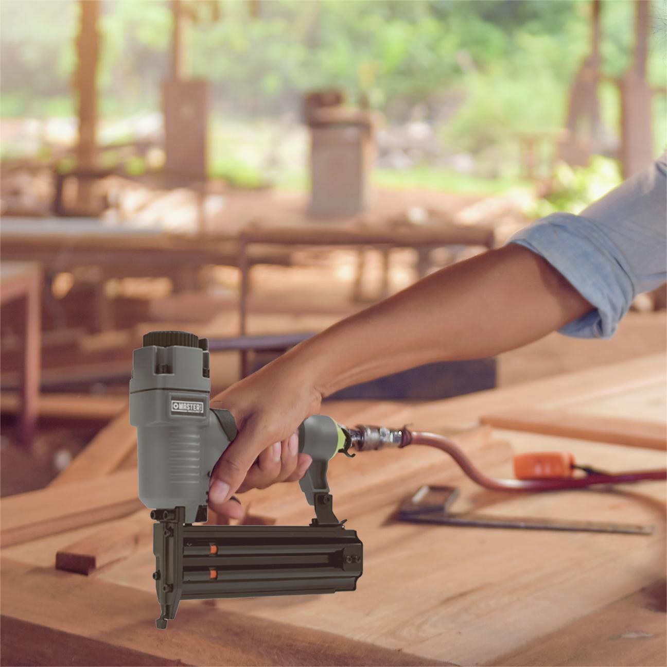• Built with die-cast aluminum, this pneumatic brad nailer is strong and lightweight, reducing fatigue during extended use
