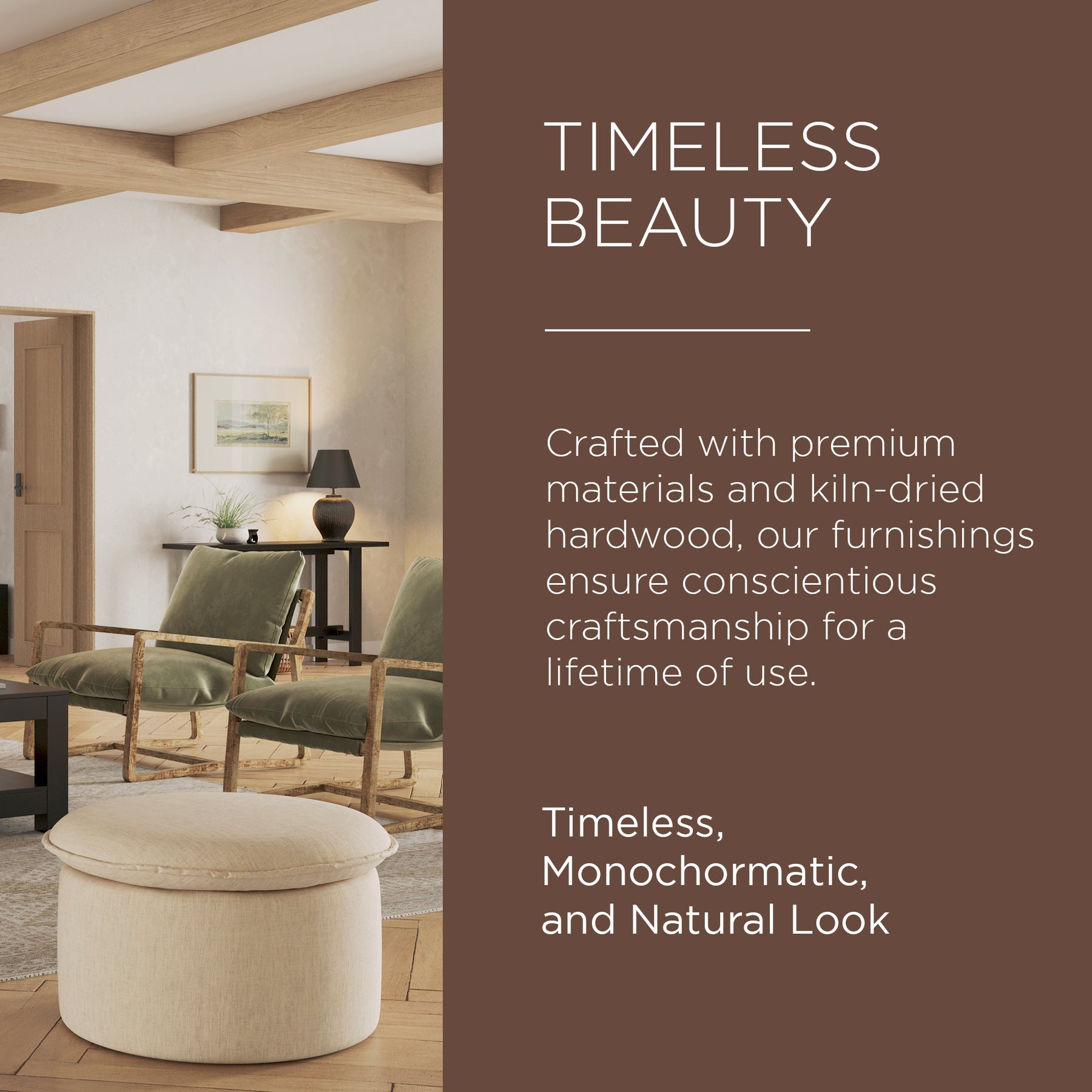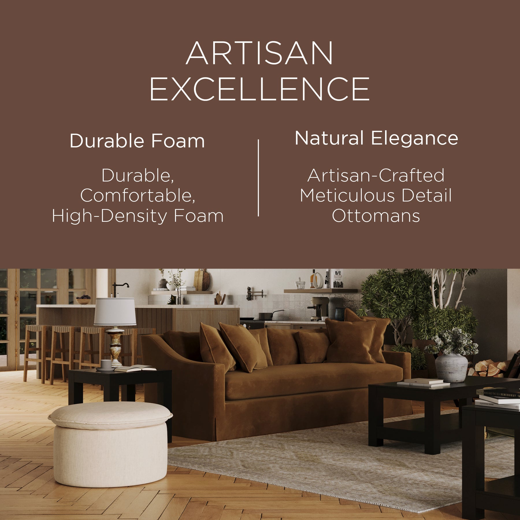 • For a timeless, monochromatic, and neutral look, this round ottoman is a must, the premium fabric and luxe feel of the upholstered ottoman will be an ideal addition