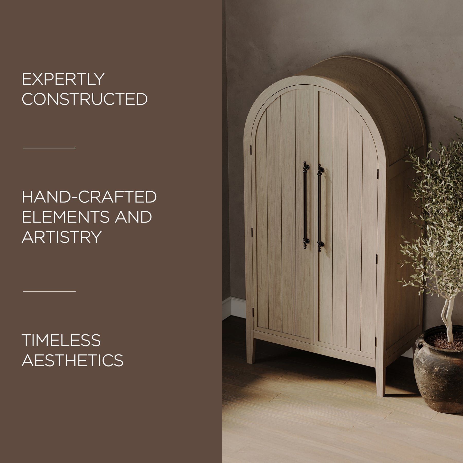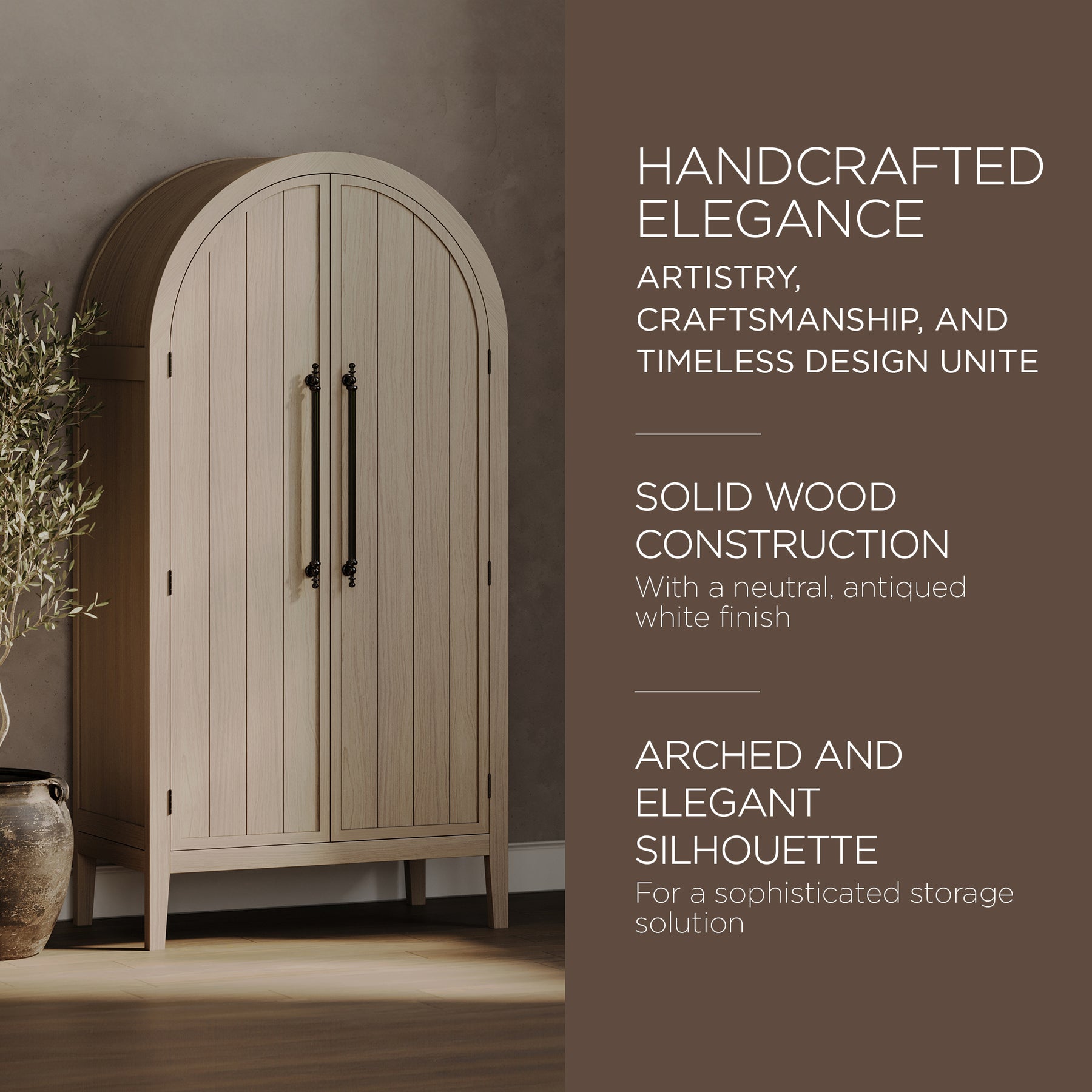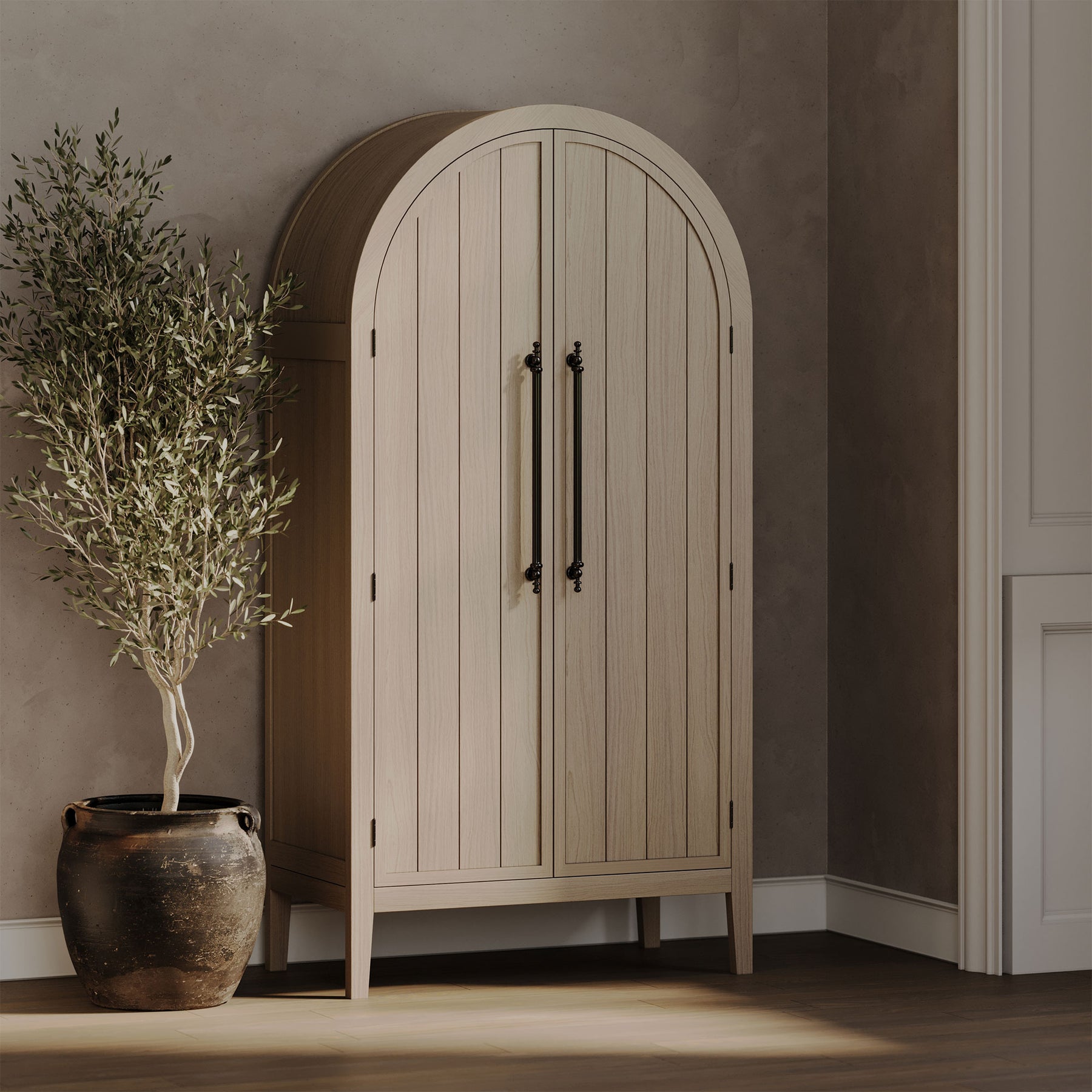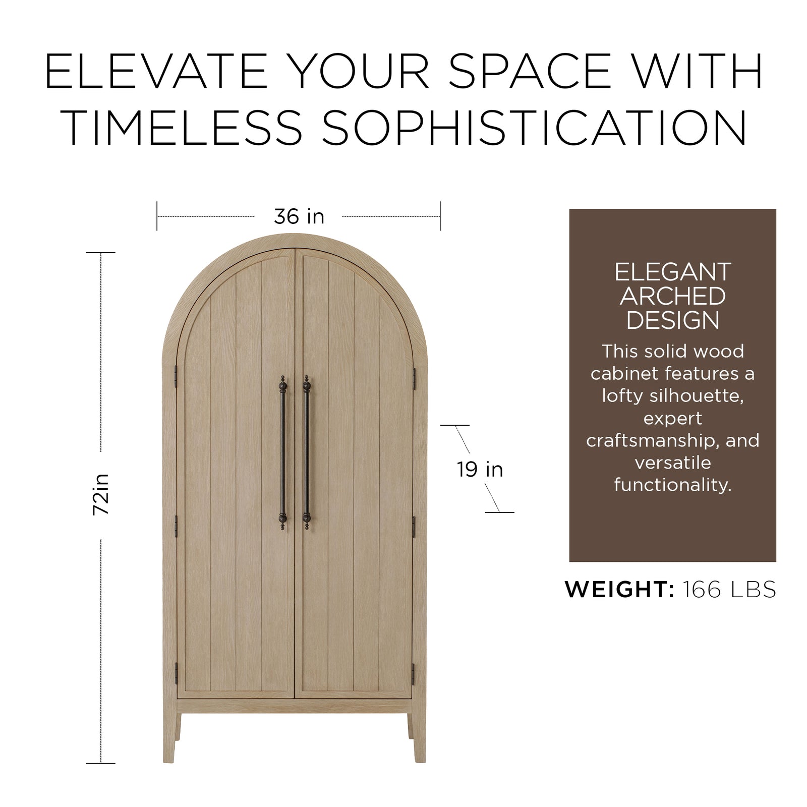 - Solid wood furniture with a neutral finish is a specialty, and this Selene Arched Cabinet delivers impeccably well