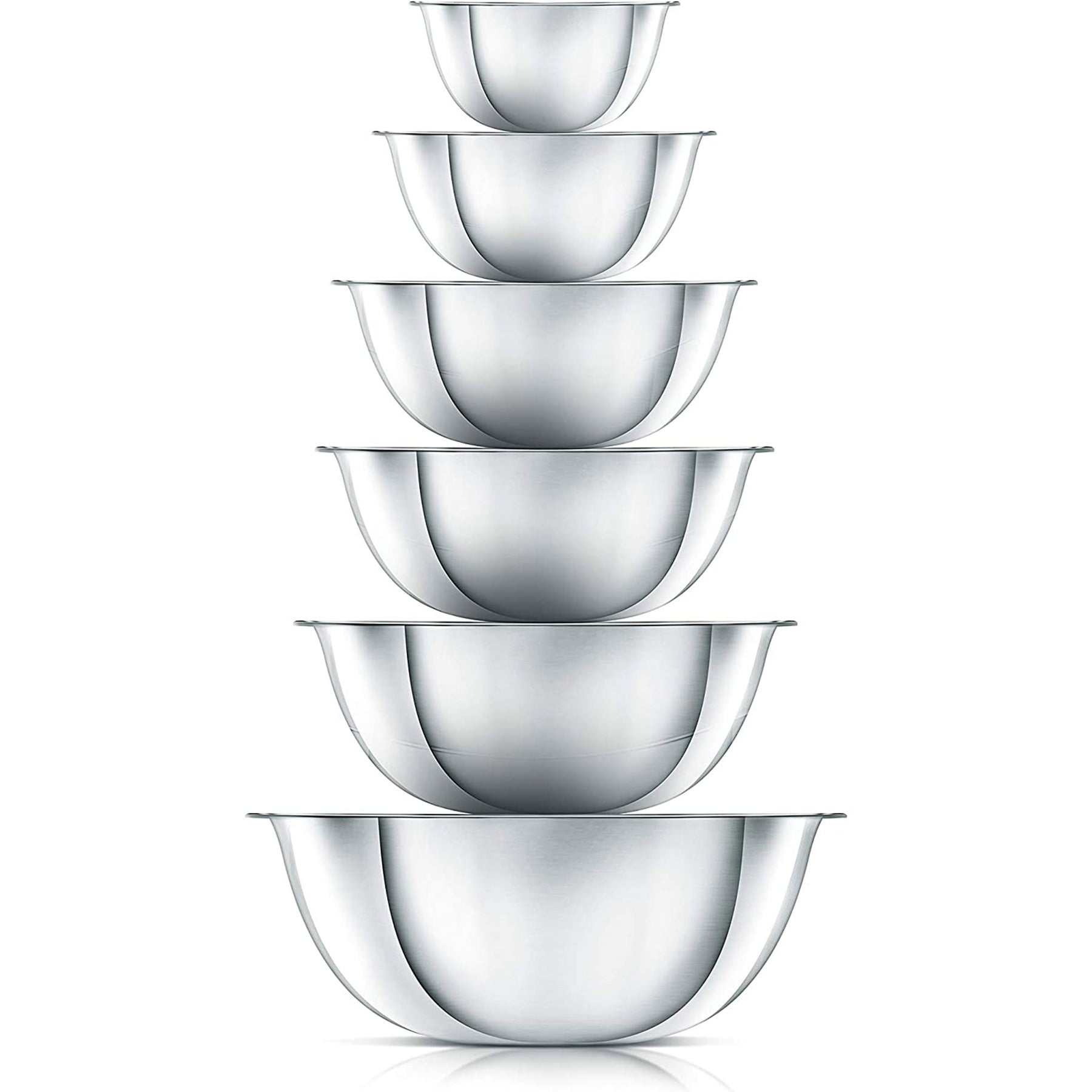 • 6-piece durable and reliable metal food bowl set perfect for food prep, serving, marinating, mixing, and more
