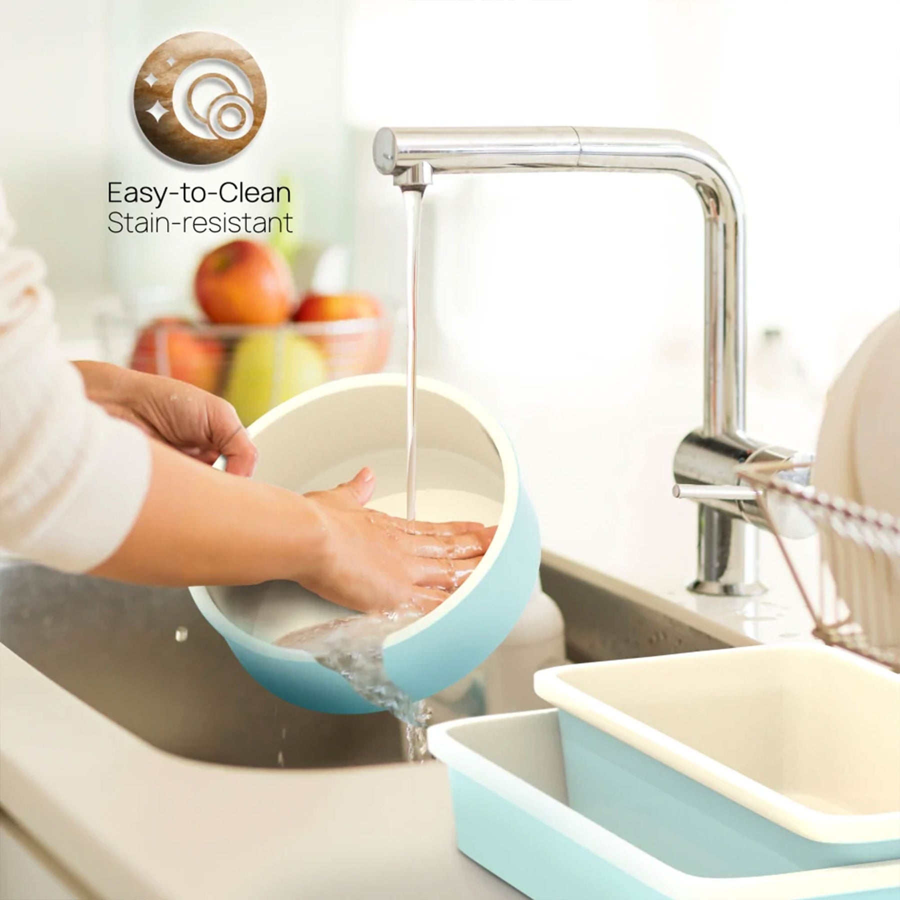 • Easy-to-clean ceramic baking set is dishwasher safe; Hand-wash recommended to prolong the life of each piece