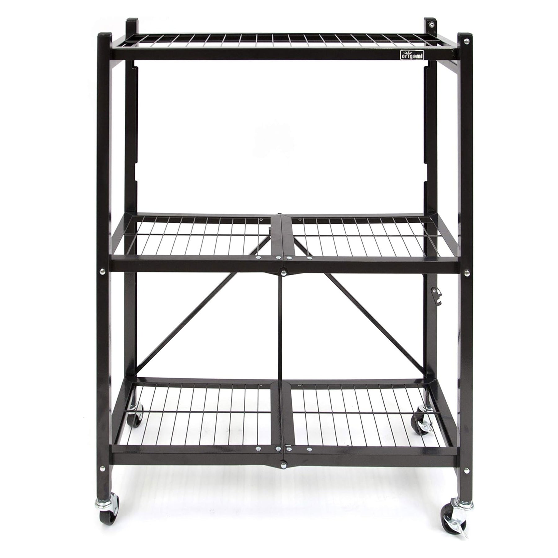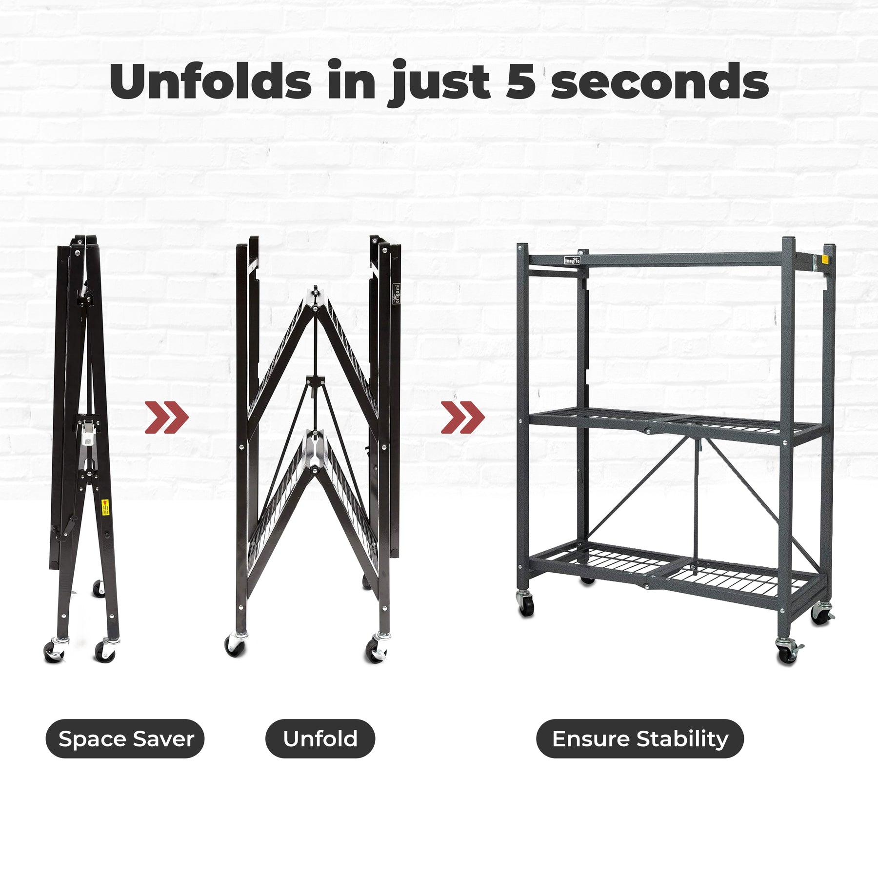 Declutter your life and add a little more organization to your home or workspace with the Origami R3 General Purpose Folding 3-Tiered Shelf Storage Racks with Wheels.