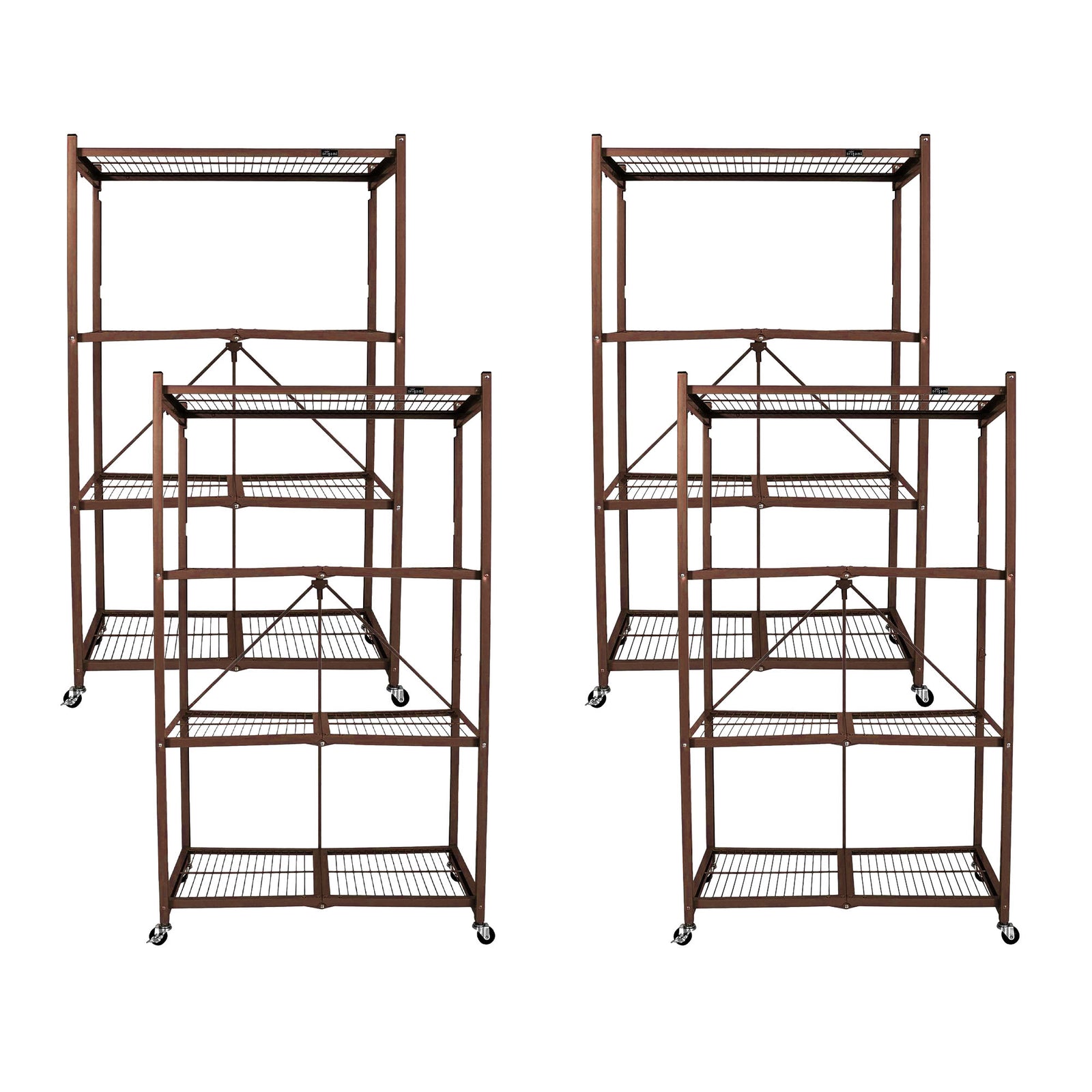 Origami 4 Tier Folding Storage Rack Unit w/ Set of 4 Magnetic Wire Shelf Liners