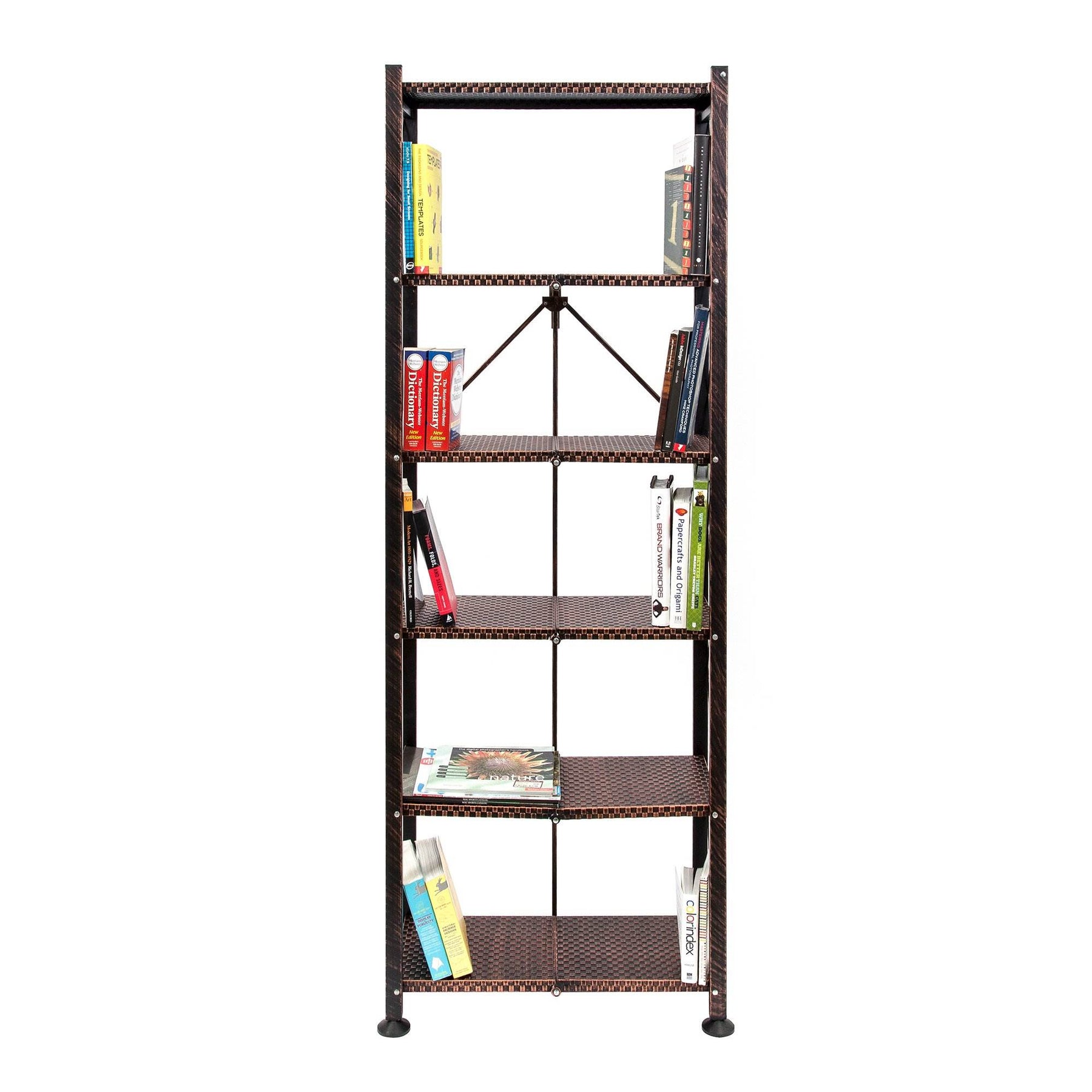 Origami 6 Tier Classic Stamped Steel Bookcase Organizer Rack, Bronze (Open Box)