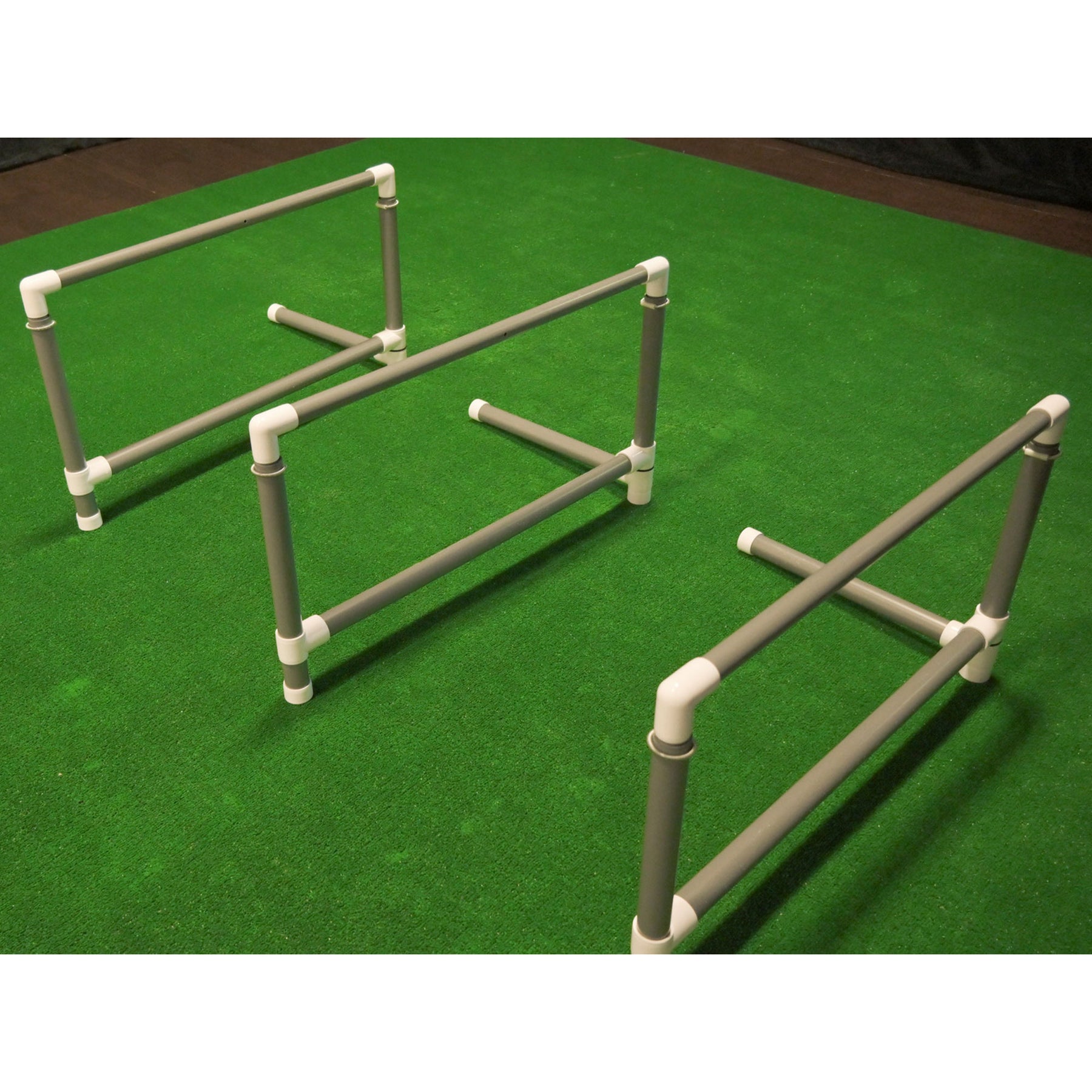 • Set of 3 height-adjustable hurdles that can be set between 27-42 inches