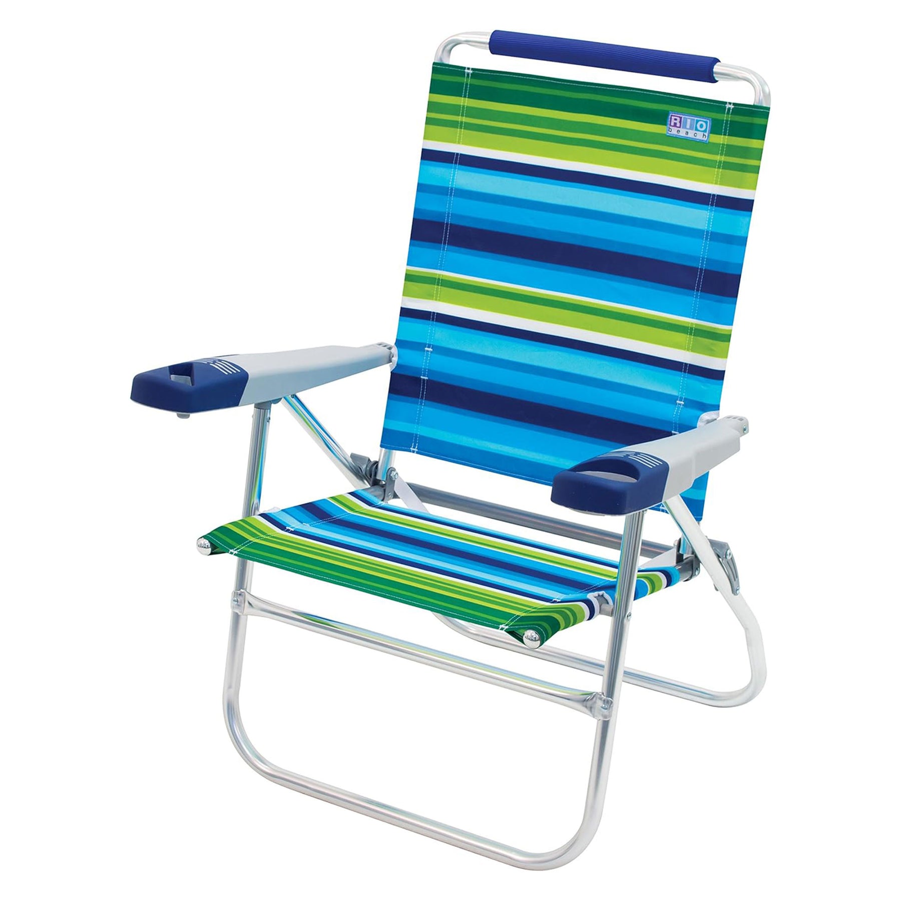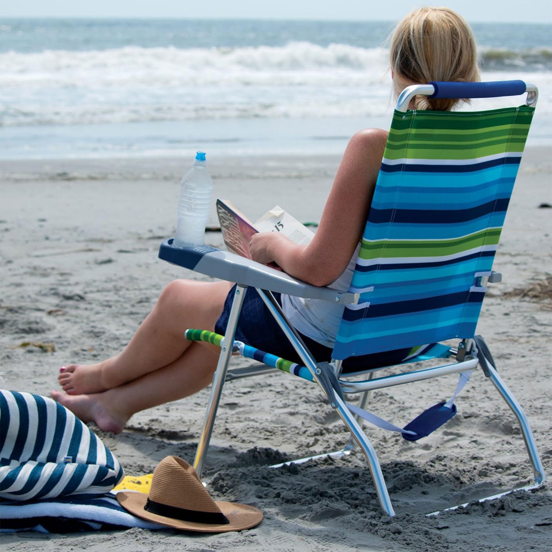 Enjoy summer at the beach, next to the pool, or in your backyard with this 4-pack of RIO Brands 15-Inch Cushioned Beach Chair with Aluminum Frame.