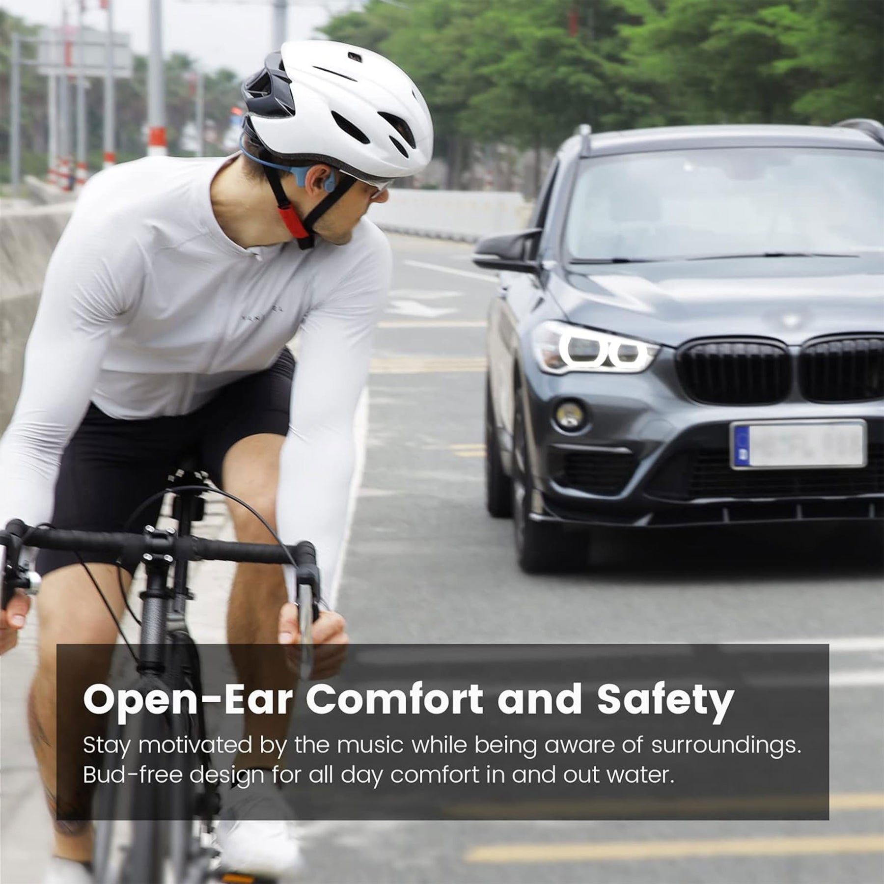 • Open-ear bone conduction sports headphones enabled by proprietary haptic technology provide cutting-edge audio quality and ensure comfortable bud-free listening