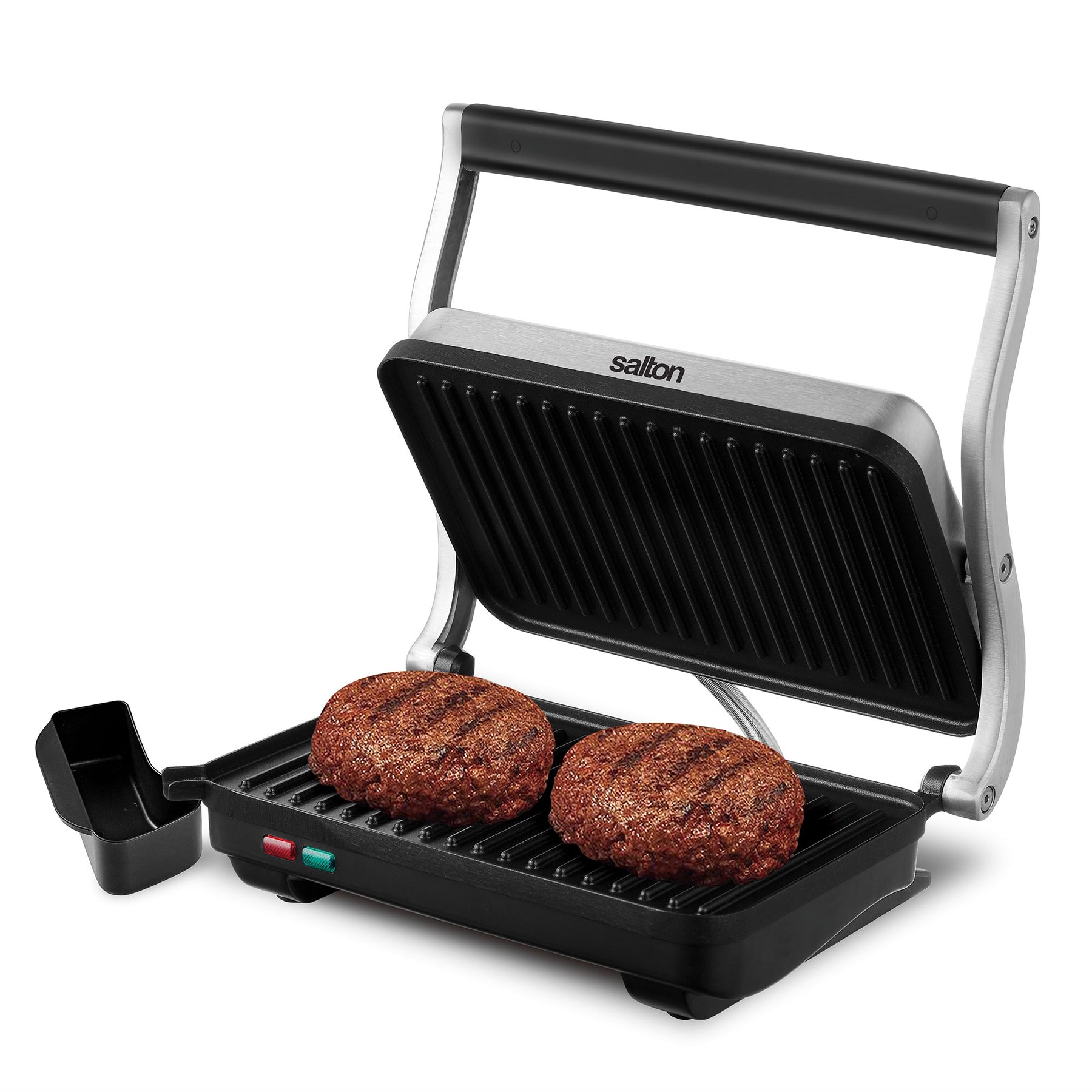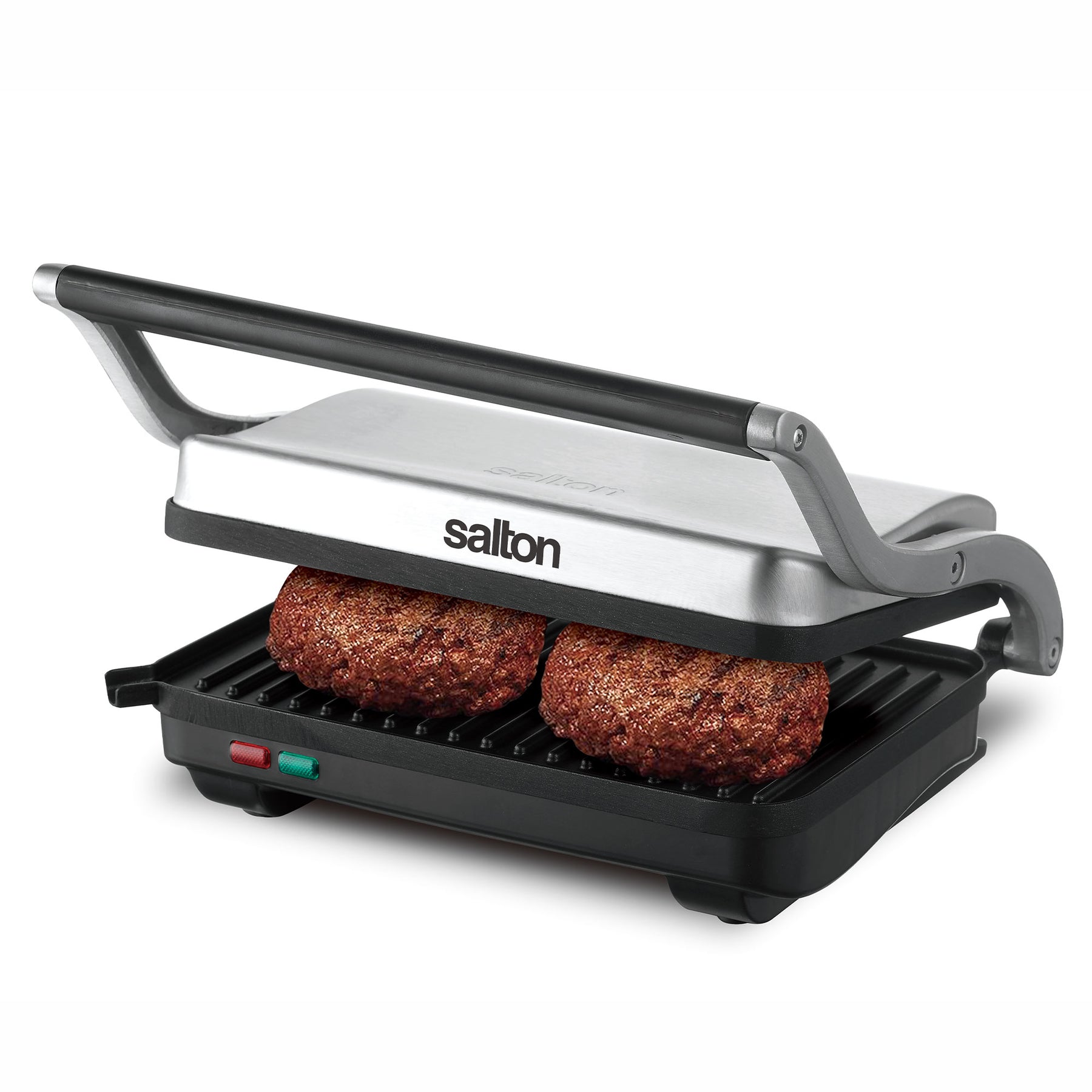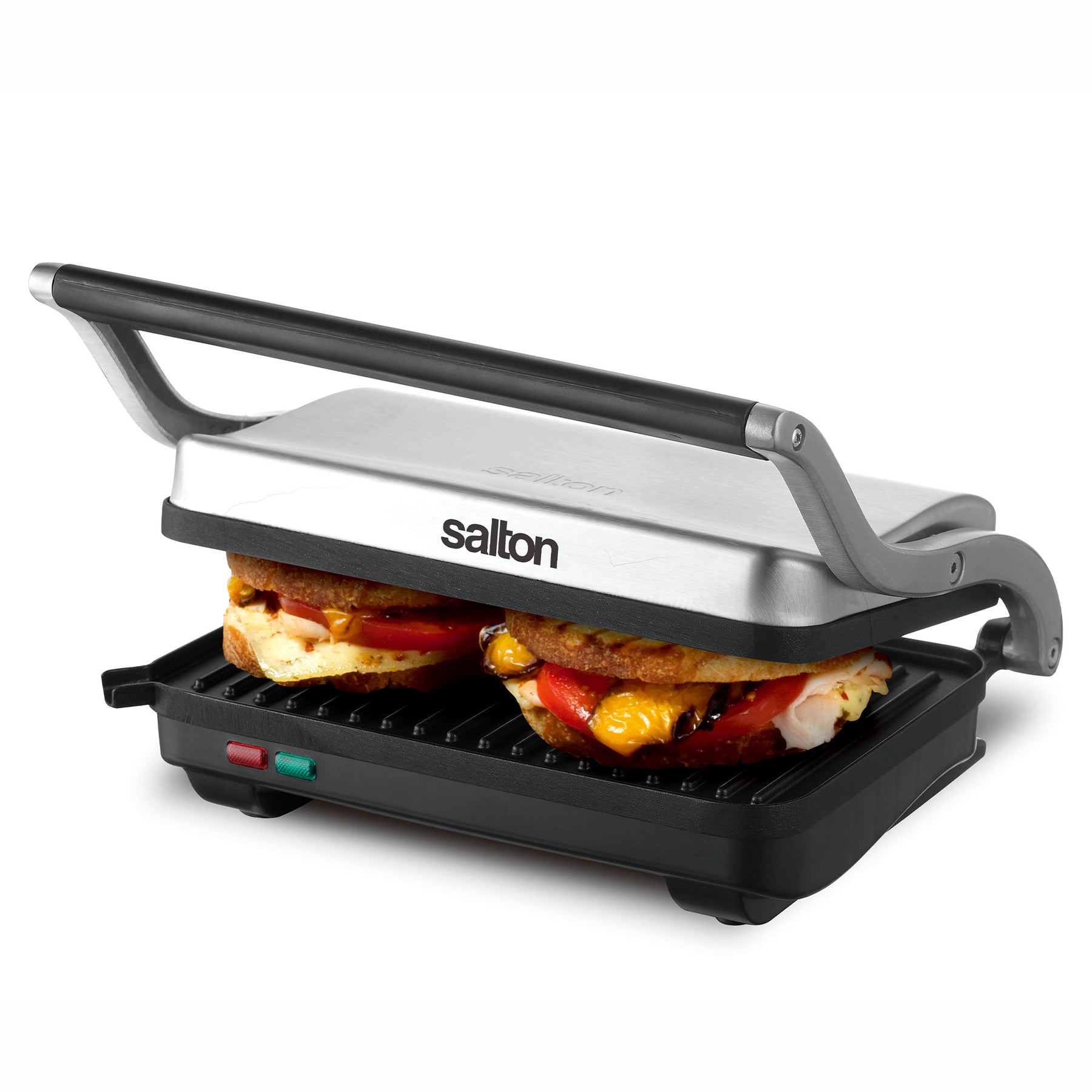 Salton Panini Grill Non Stick Electric Sandwich Press, Stainless Steel(Open Box)