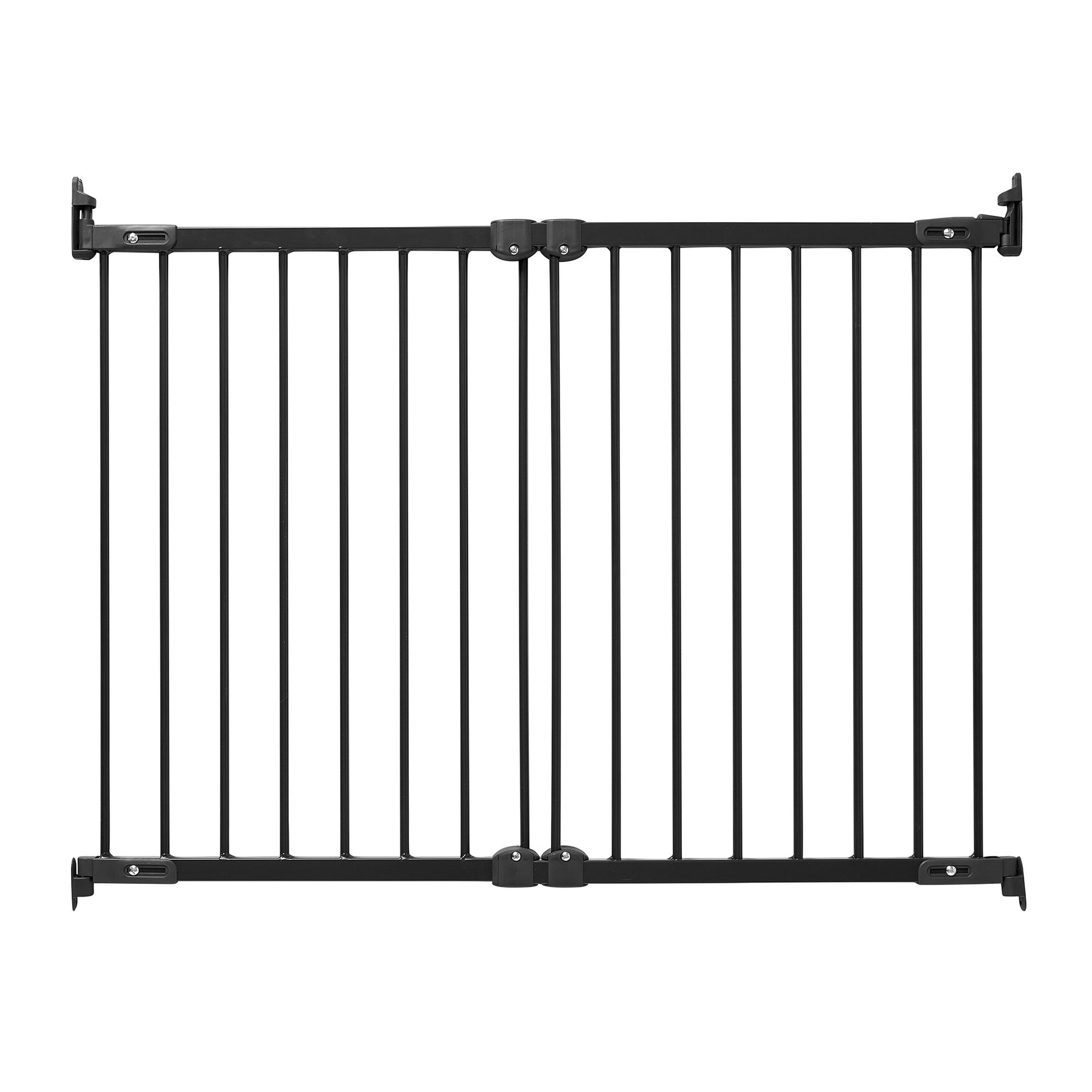 • Keep your pets safe with this extendable pet gate that fits within doorways, outside door frames, at the top and bottom of stairs, and along straight and angled walls