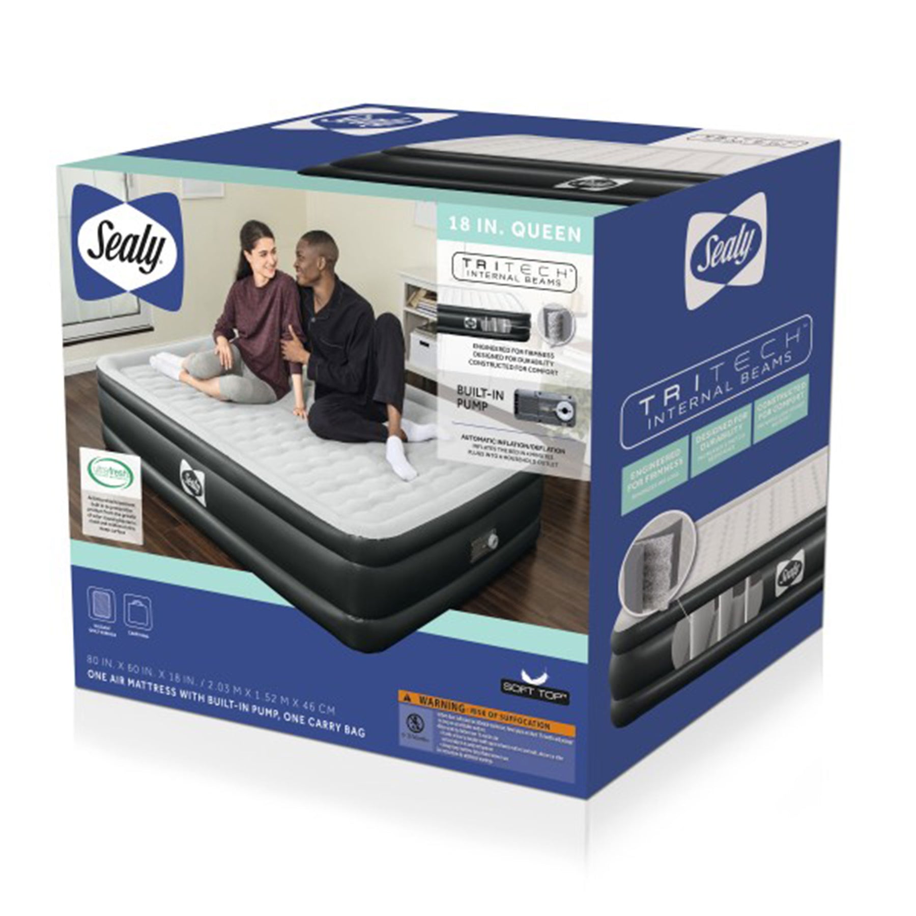 Sealy Tritech 18 Inch Inflatable Mattress Queen Airbed with Air Pump (Open Box)