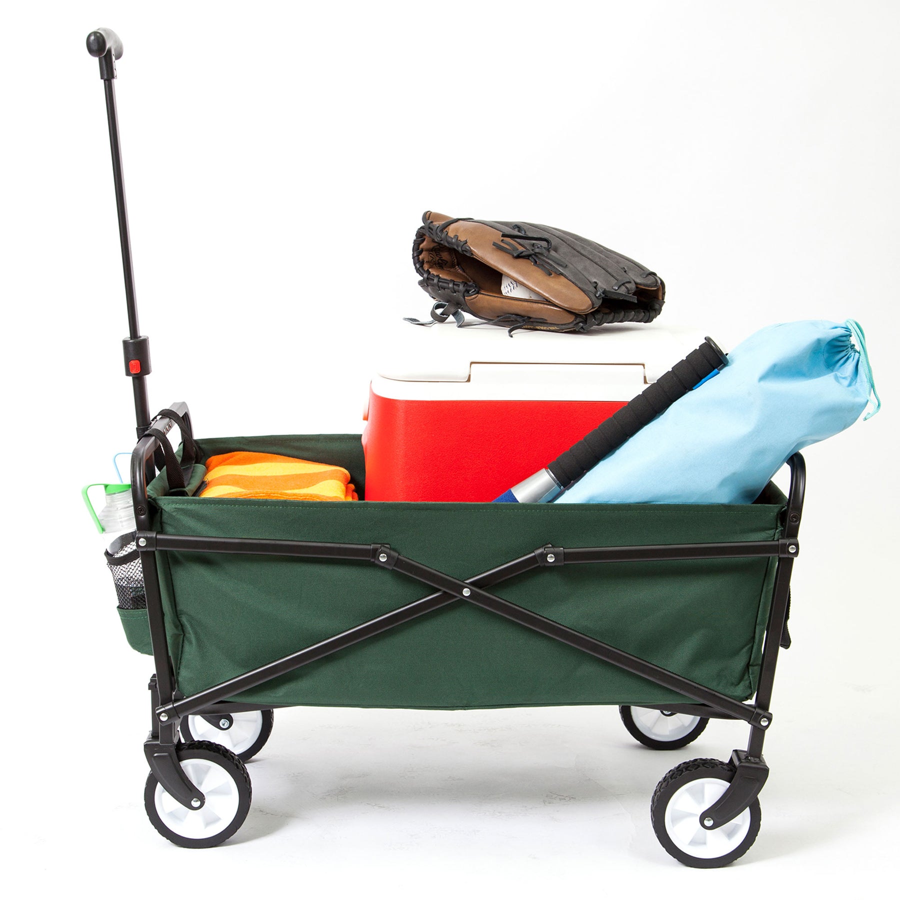 • Utility wagon with robust steel frame and durable 600D polyester fabric ensures reliable performance, capable of carrying up to 150 pounds of cargo