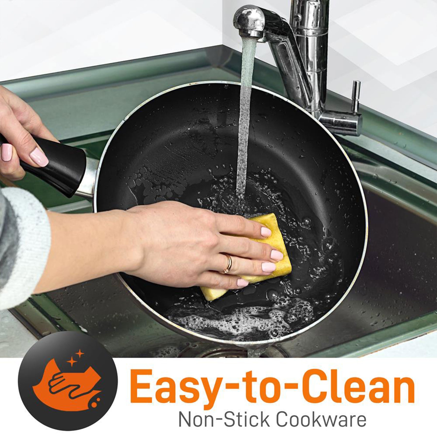 - The non-stick kitchenware has tempered glass lids with vents for steam to escape