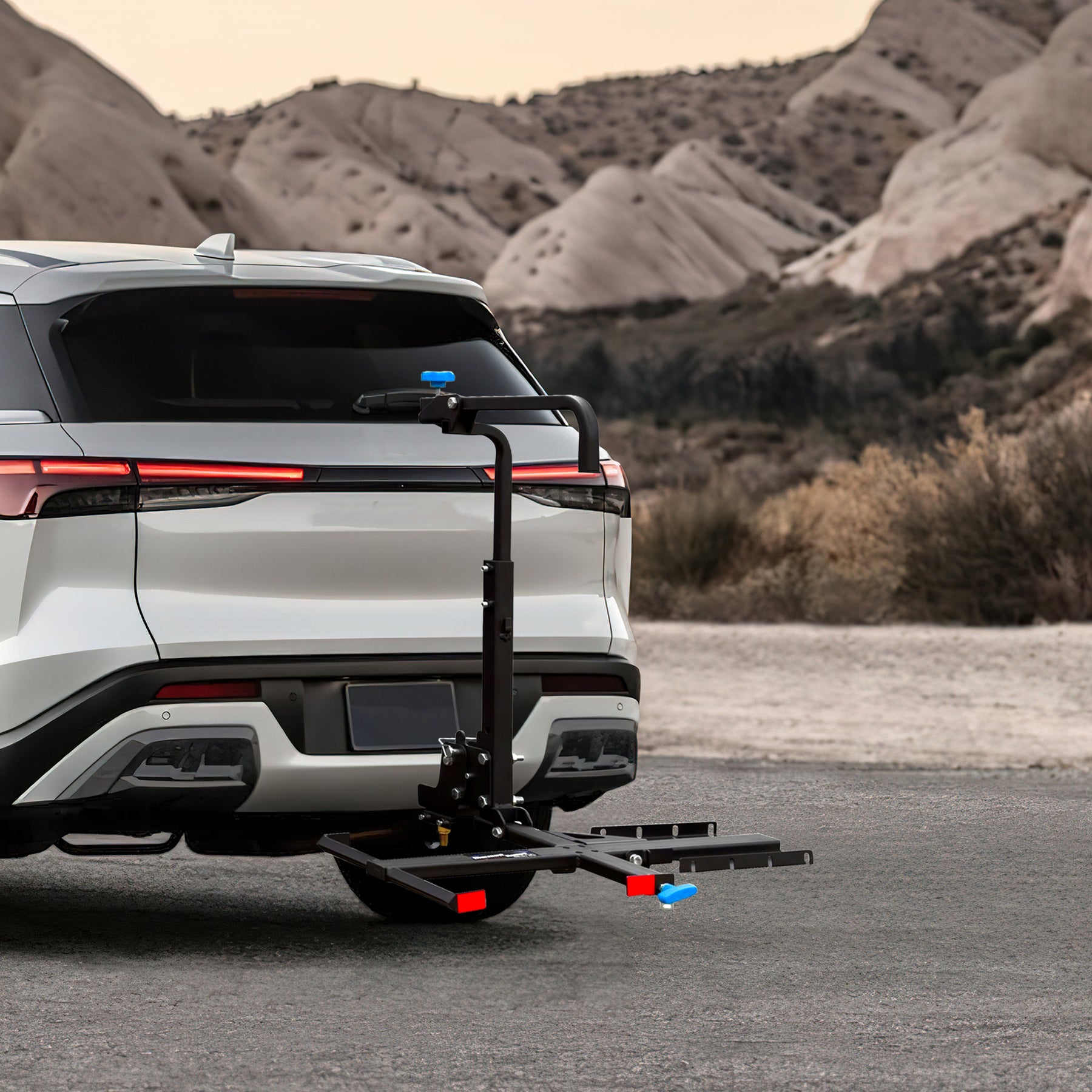 • Folds down for easy trunk or hatchback access, and folds up when not in use to save space and improve safety during parking