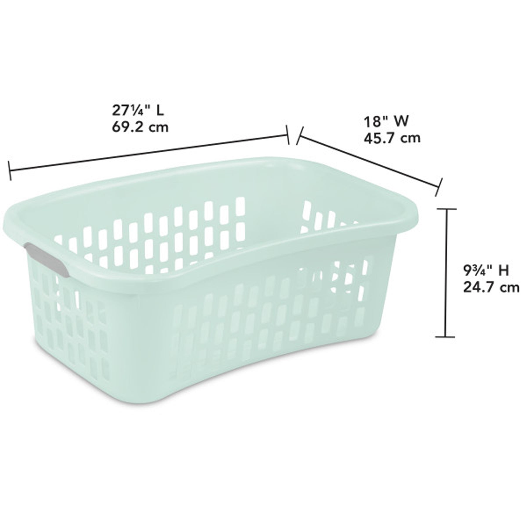 - Laundry basket has outside dimensions of 27 1/4" L x 18" W x 9 3/4" H, ideal to carry large loads of laundry