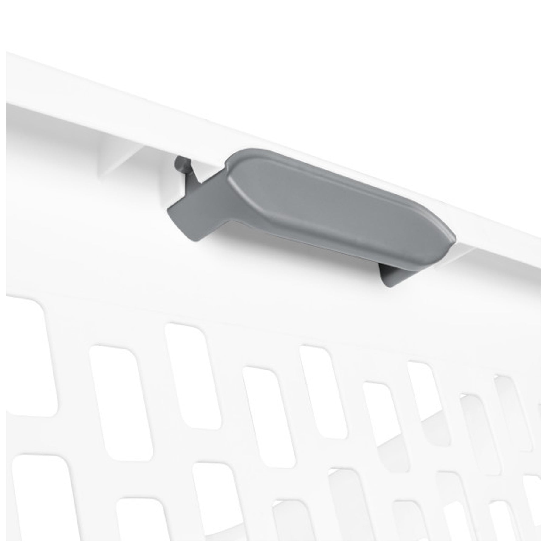 The attractive rectangular hole pattern enhances airflow, keeping your laundry fresh and minimizing the buildup of moisture and odors. For added convenience, the basket is designed with 3 durable handles integrated into the rim and a contoured shape that rests comfortably against the hip for effortless transporting, to easily carry large loads to and from the laundry room. Measuring 27.25 inches long, 18 inches wide, and 9.75 inches tall with a large 1.5 bushel capacity, this rectangular open top hamper is ideal for everyday laundry tasks, offering just the right amount of capacity to handle your clothing load efficiently. Upgrade your weekly laundry routine with the 1.5 Bushel HipHold Laundry Basket, a combination of functionality, style, and durability that makes those dreaded laundry days easier.