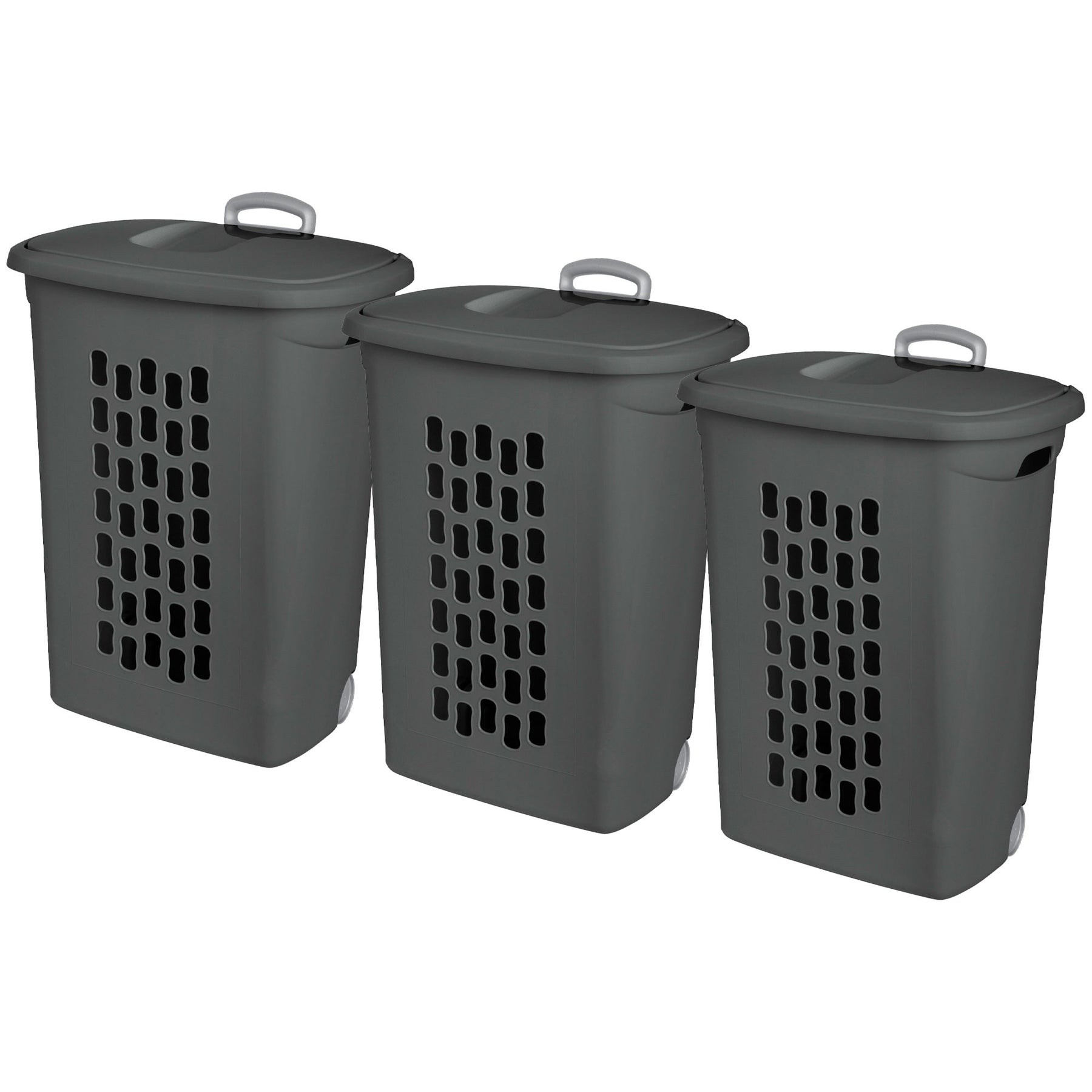Sterilite Ultra Wheeled Hamper, Laundry Basket w/Lid & Handle, Flat Grey, 3 Pack