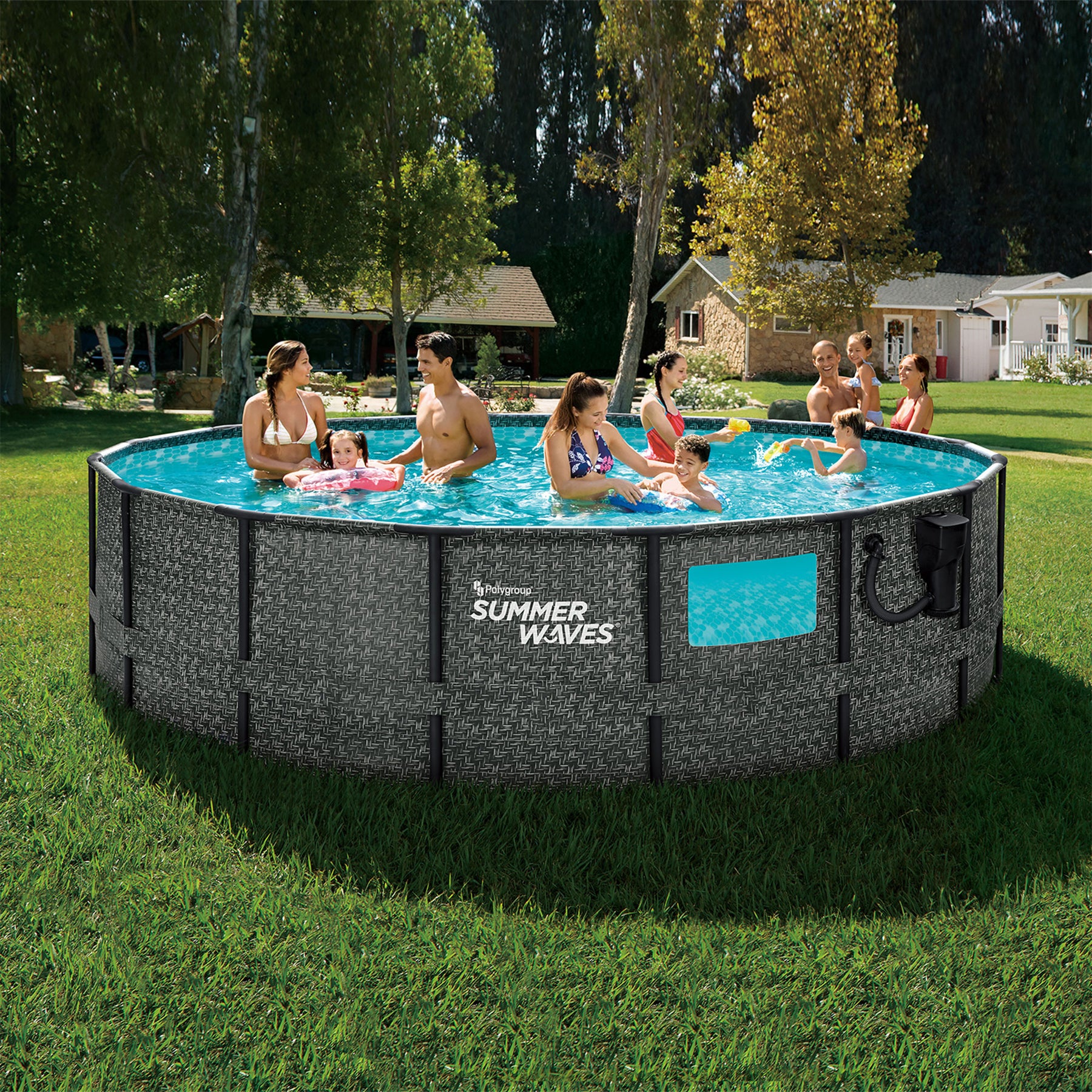 • Holds the whole family inside the 16-foot diameter round frame above-ground pool with 48-inch pool walls