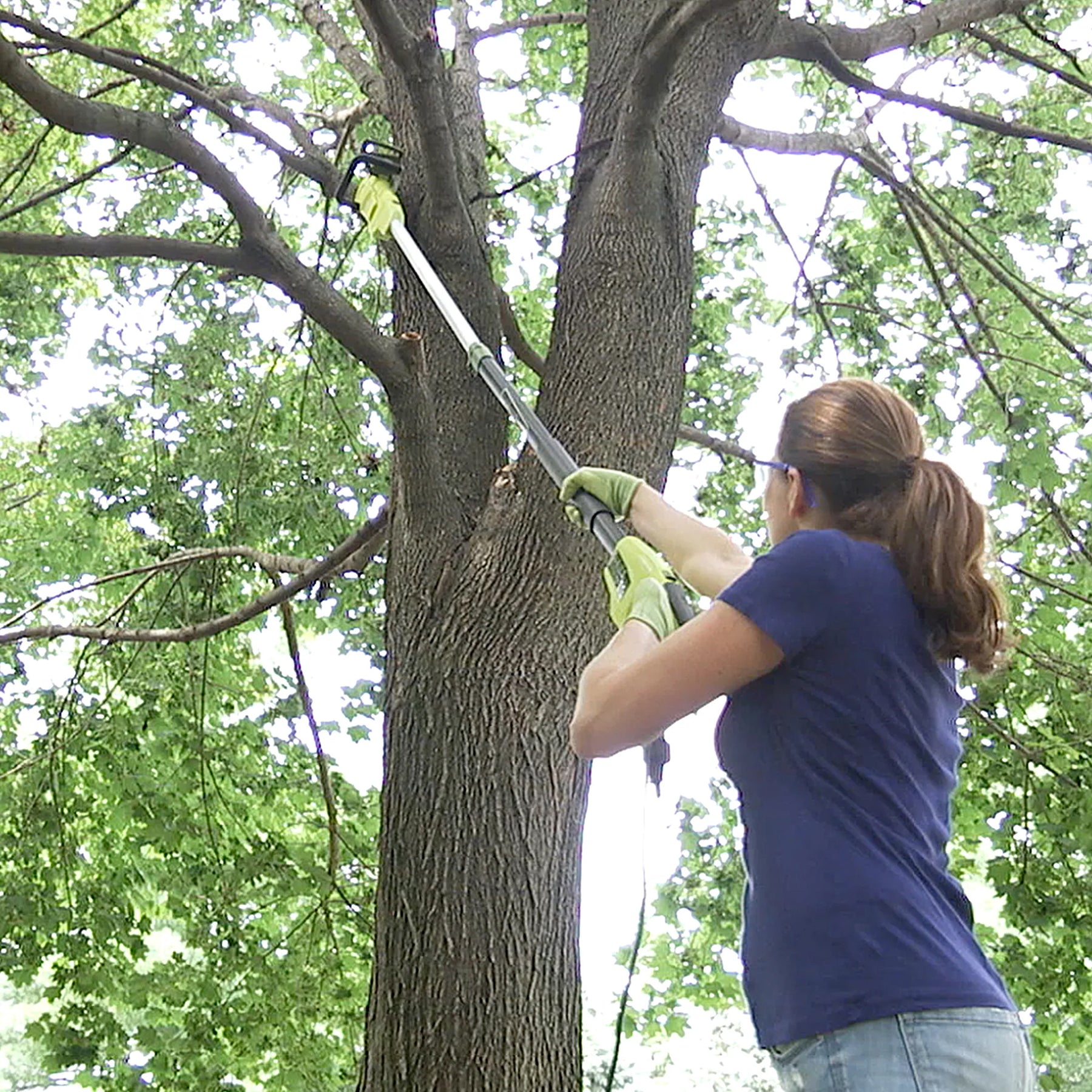 - Versatile 2-in-1 convertible electric pole and chain saw with telescoping reach for trimming high branches