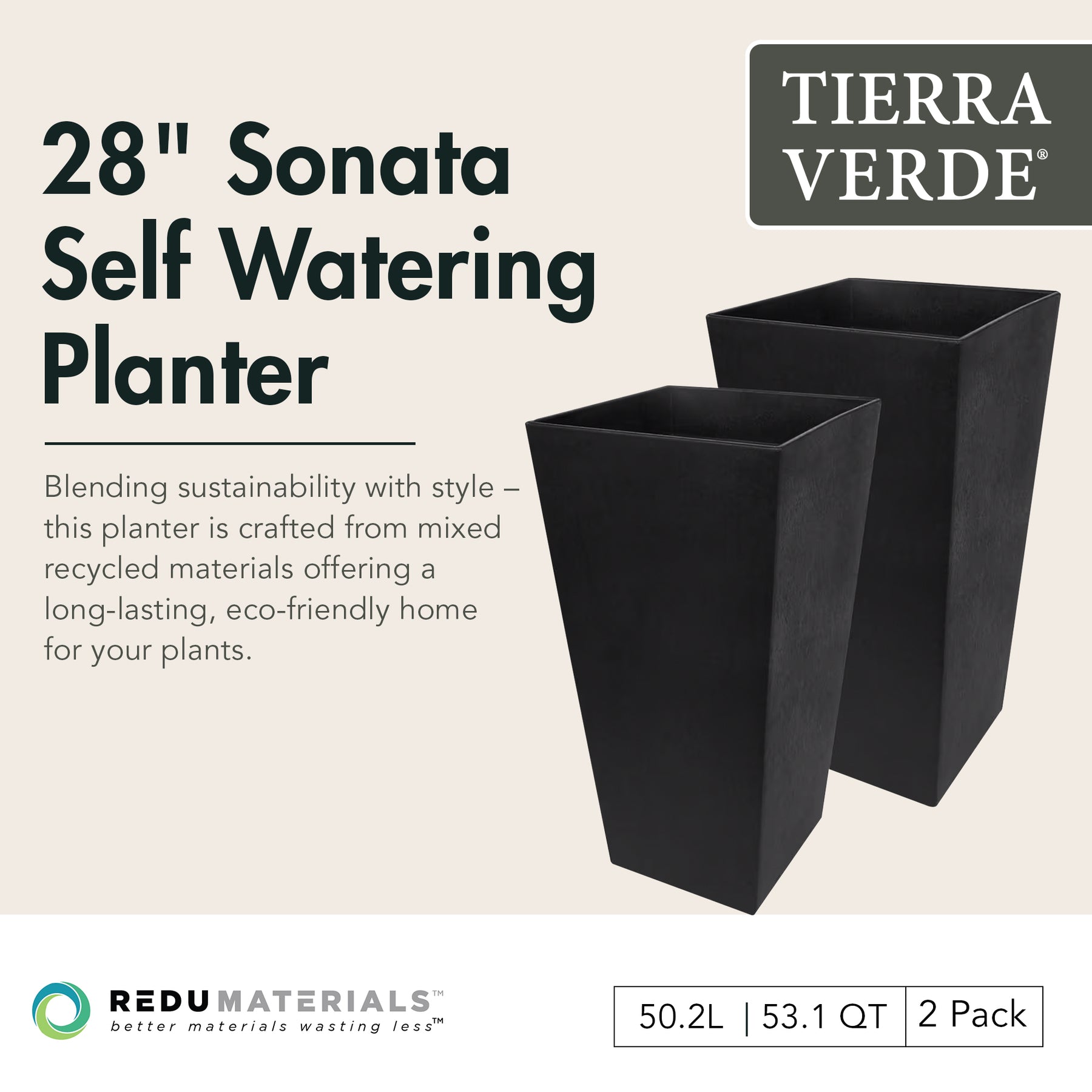 Tierra 2pk Indoor Outdoor 28 Inch Self Watering Planters, Sonata (Open Box)