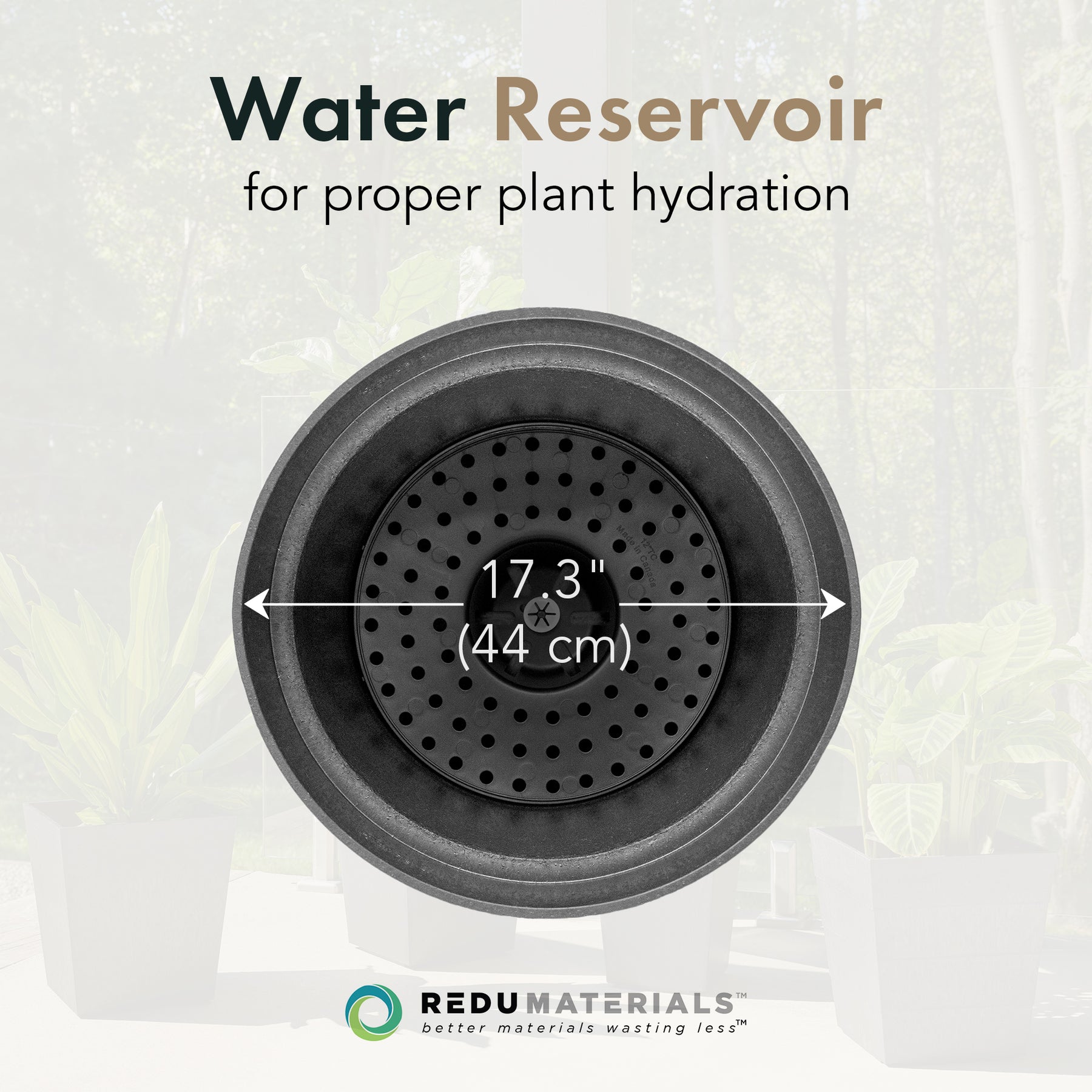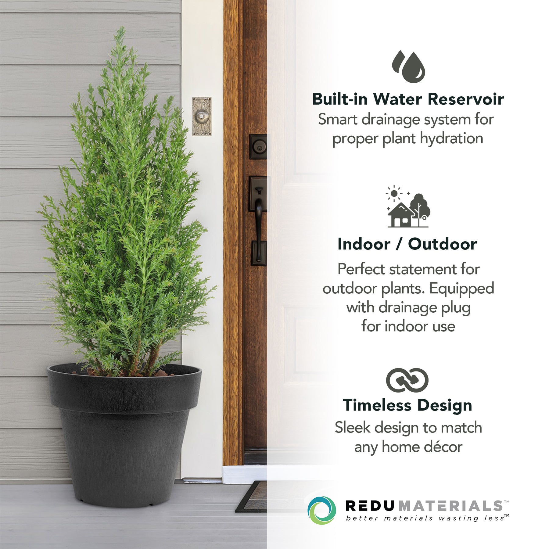 • Made from eco-friendly recycled material, these black planters are crack-proof and recommended for all-season use